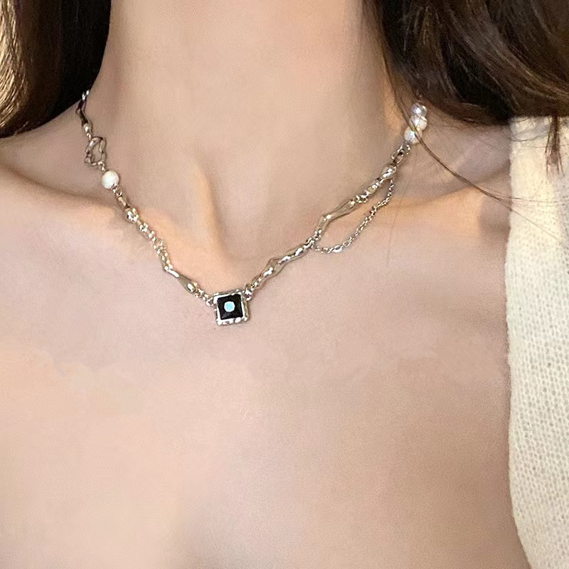 ins網紅淡水珍珠鋯石項鏈女潮甜酷辣妹輕奢高級設計感小眾鎖骨鏈