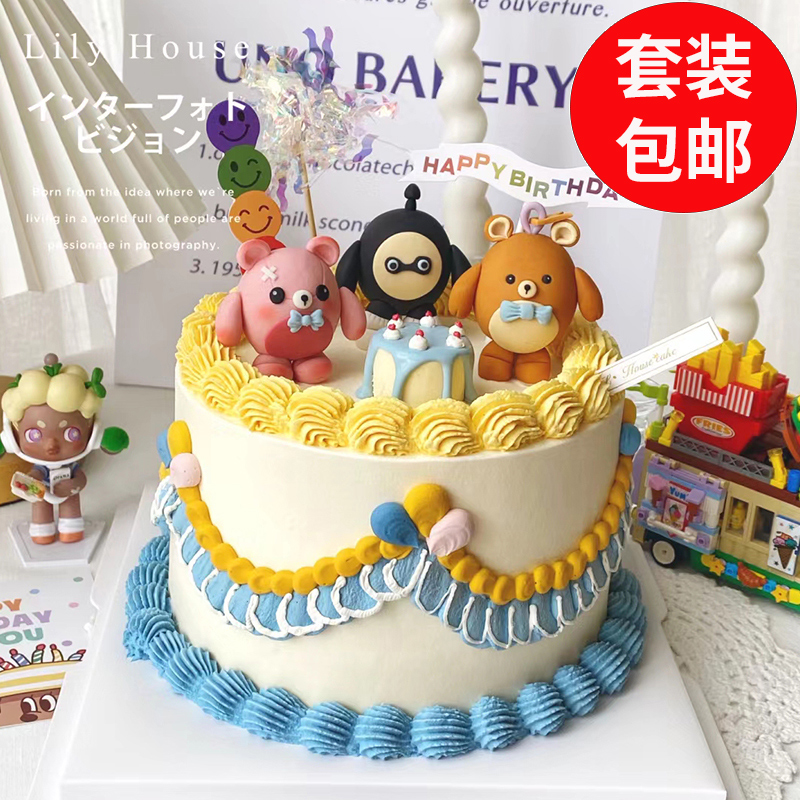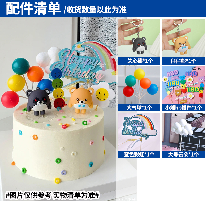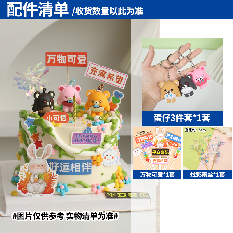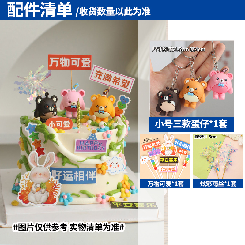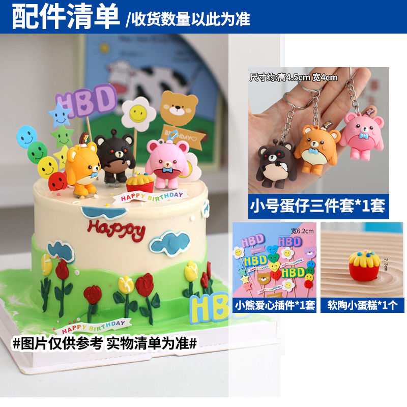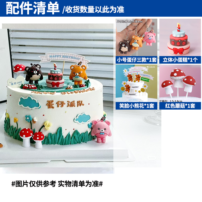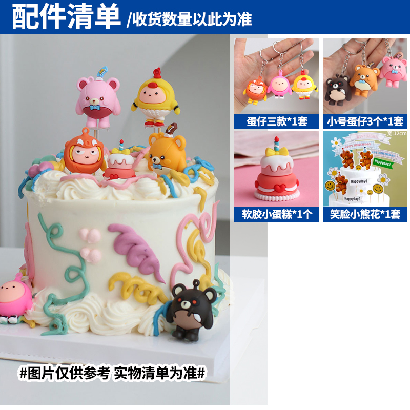蛋仔蛋糕裝飾卡通仔仔熊失心熊粉仔小熊擺件兒童生日派對烘焙插件