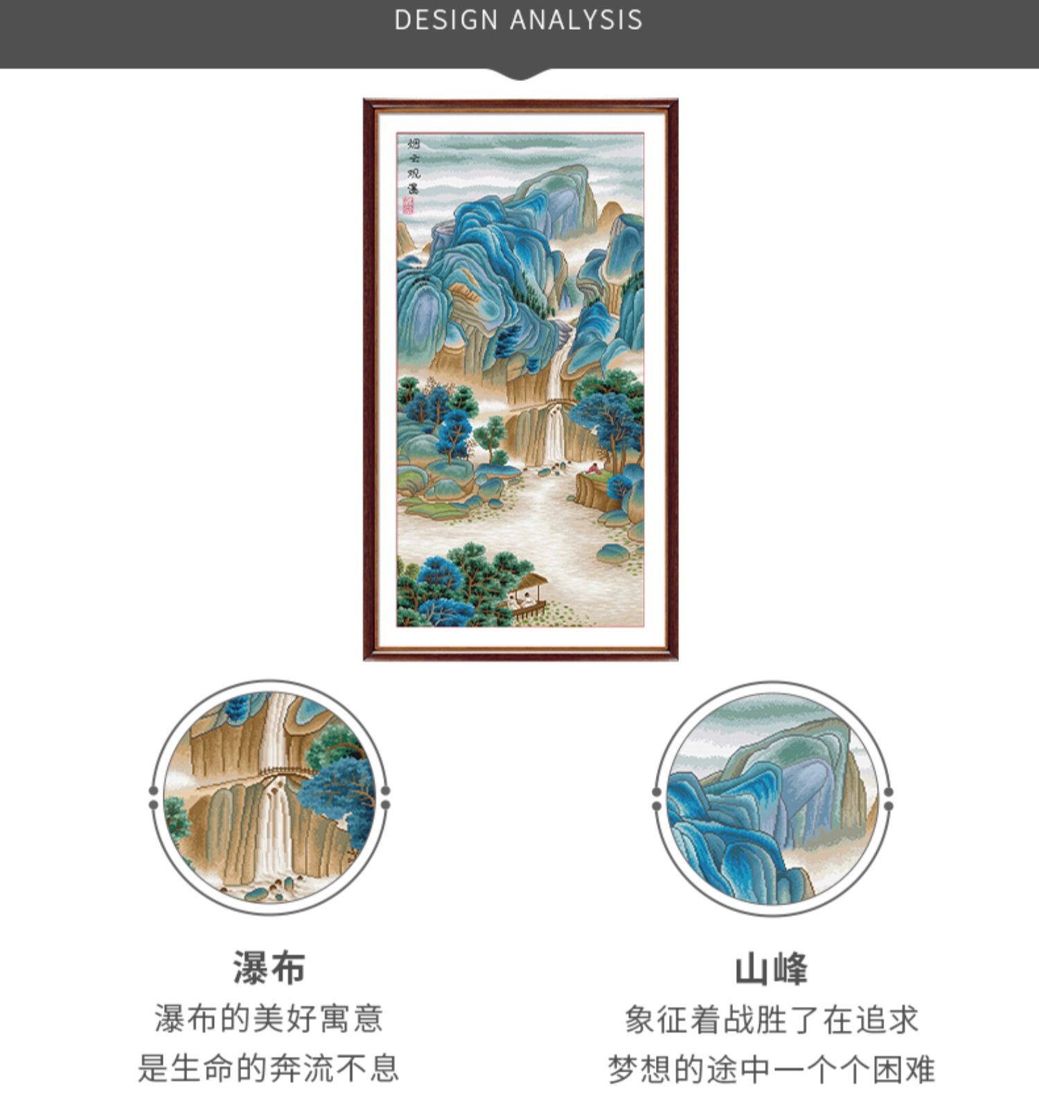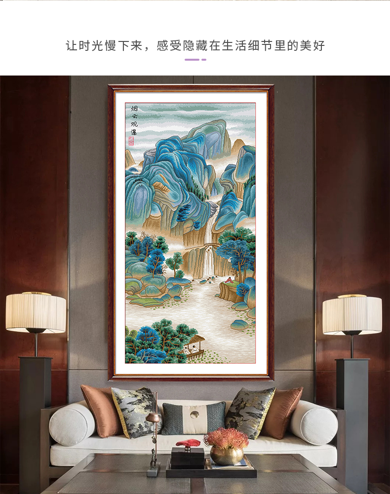 玄關十字繡2023新款中式客廳煙云觀瀑滿繡刺繡山水畫線繡自己繡