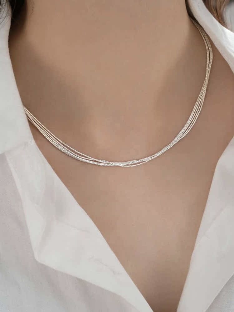 氣質銅合金鍍銀多層項鏈女2023年新款潮小眾輕奢百搭高級感鎖骨鏈
