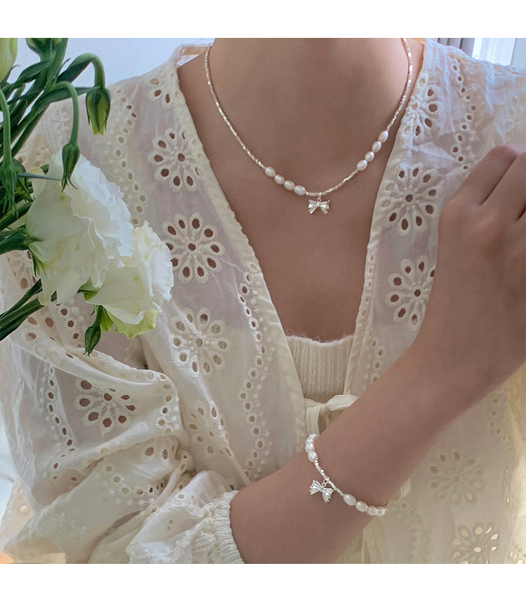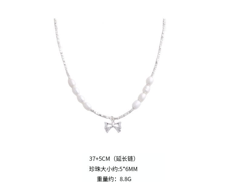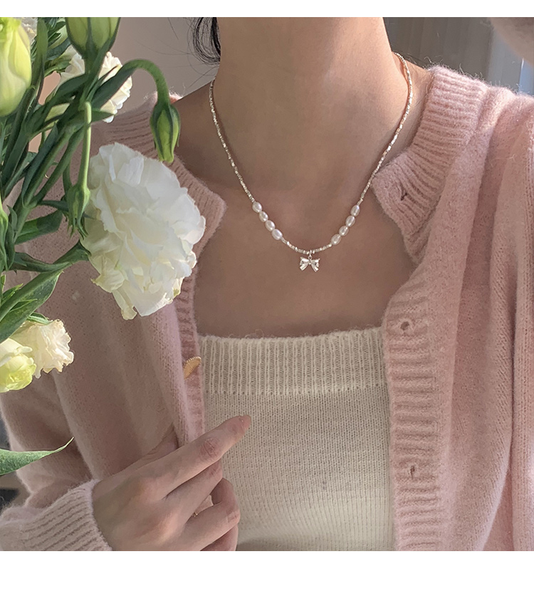 S925純銀碎銀子天然珍珠蝴蝶結吊墜項鏈2023年新款爆款女頸鏈百搭