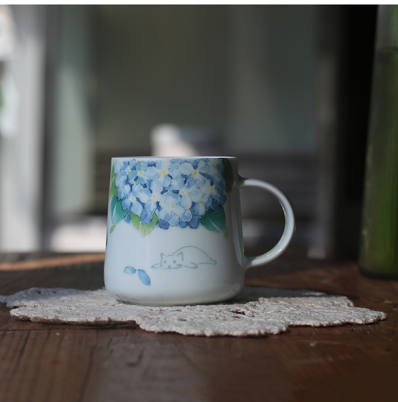 子木繡球貓咪景德鎮玲瓏瓷小清新可愛馬克杯生日禮品動物水杯女生