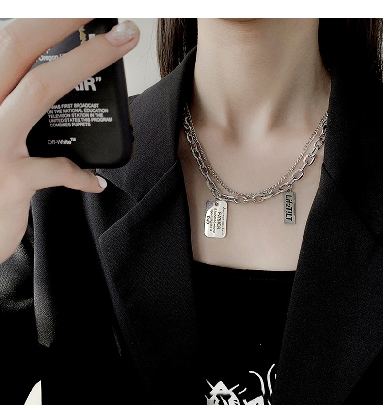 FDK嘻哈潮牌字母方牌雙層疊戴項鏈男女同款朋克復古百搭款歐美