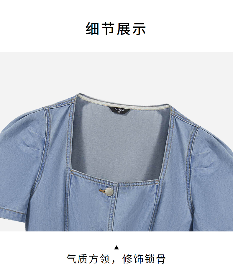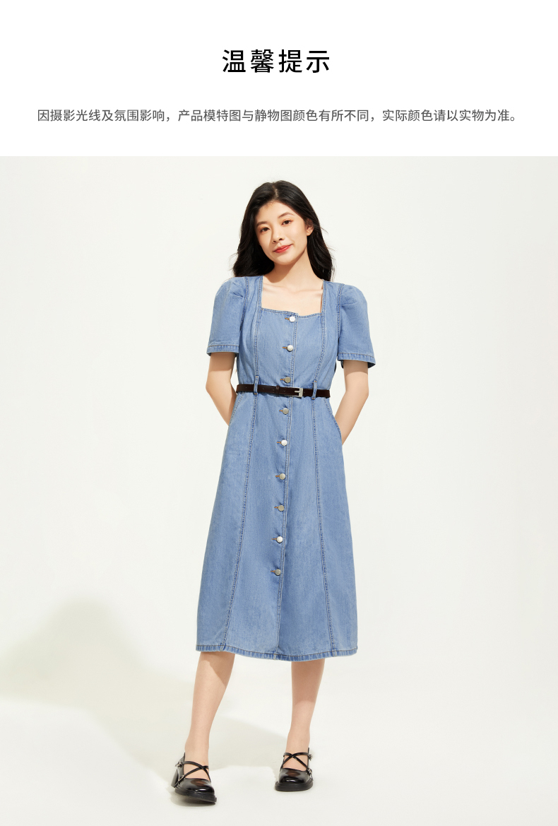 熱風2023年夏季新款女士方領中長連衣裙水洗親膚軟牛仔連衣裙