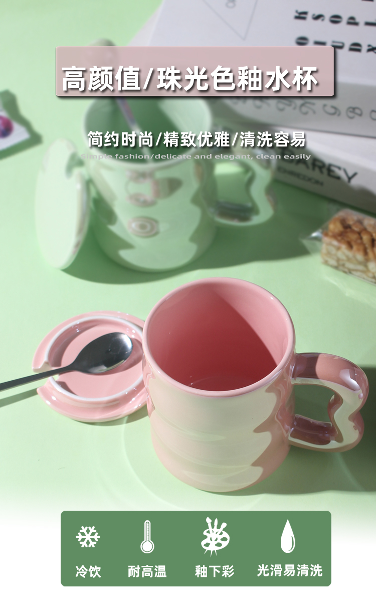 卡通喝水杯陶瓷桌面辦公室馬克杯可愛咖啡杯大容量女早餐杯帶蓋勺