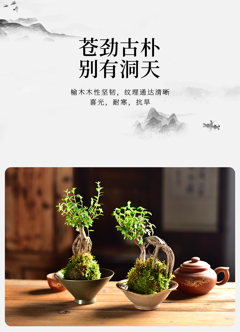 老樁榆樹造型盆景綠植懶人盆栽室內書房桌面好養易活美觀四季常青