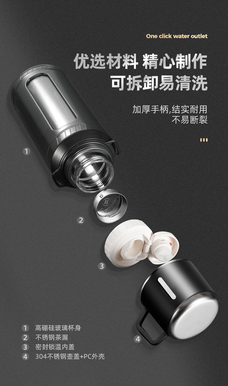 大容量1000ml耐高溫玻璃水杯便攜水壺男女士茶水分離泡茶隨手杯子