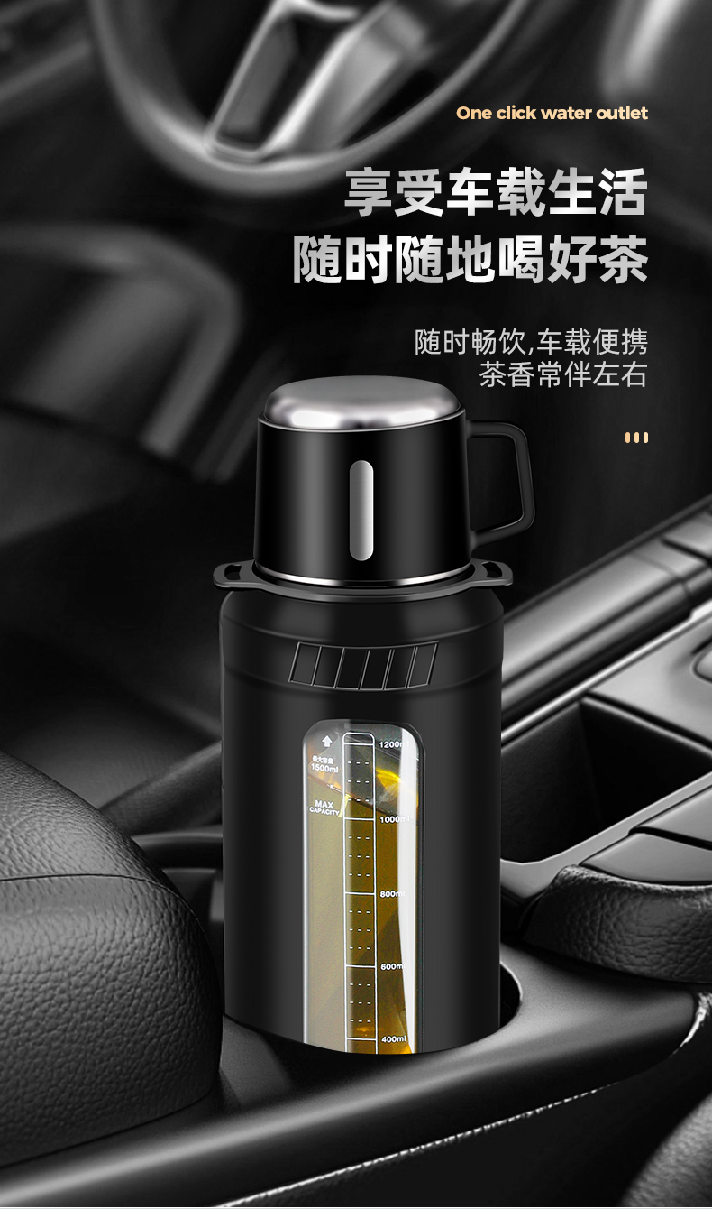 一鍵開蓋車載雙層玻璃杯男士辦公室保溫水杯茶杯速開啟茶水分離杯