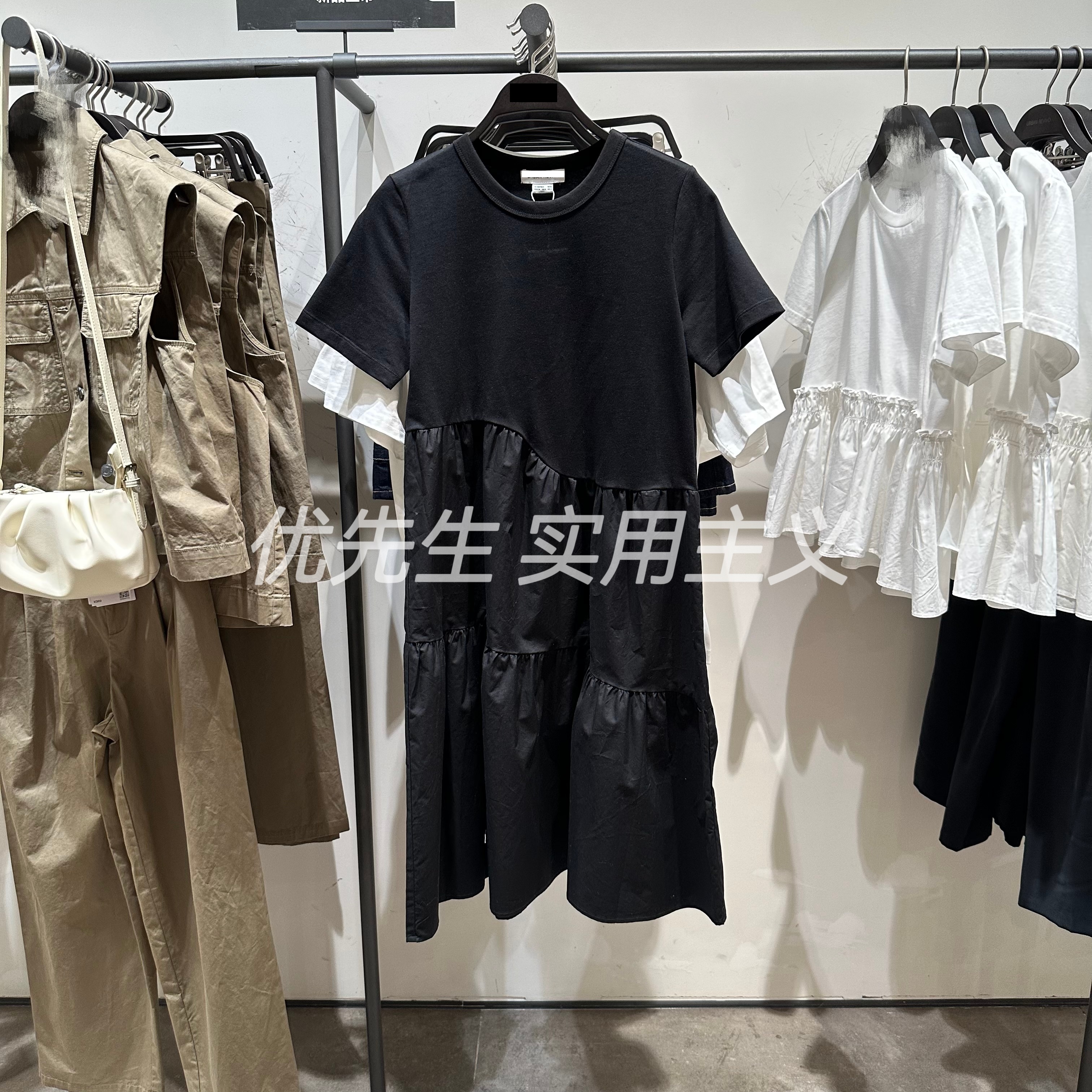 YT&UR2023夏季新款女裝時尚不對稱拼接疊層短袖連衣裙UWU732034