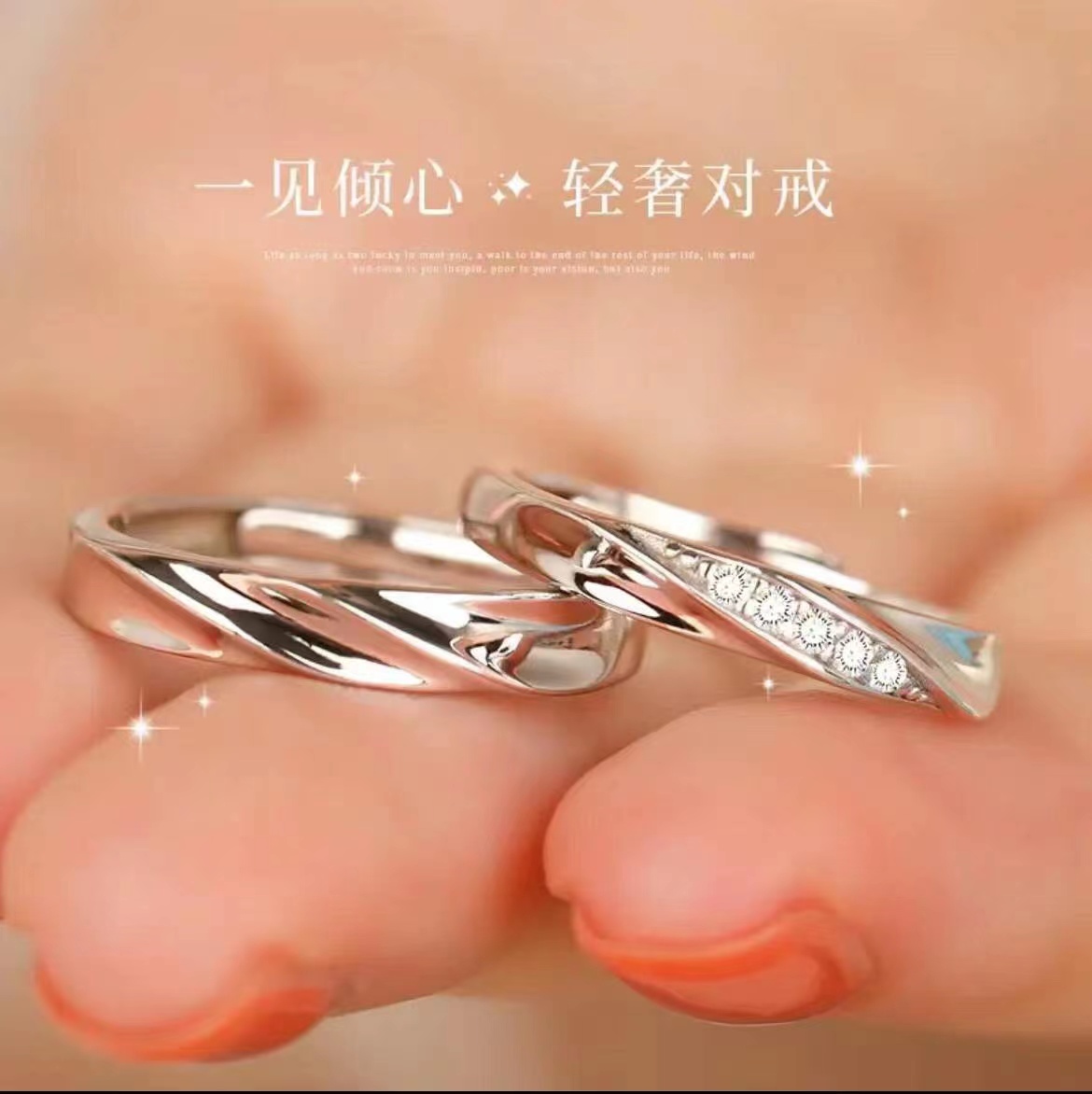 純銀戒指s999足銀一對情侶對戒小眾設計高級感活口調節送女友禮物