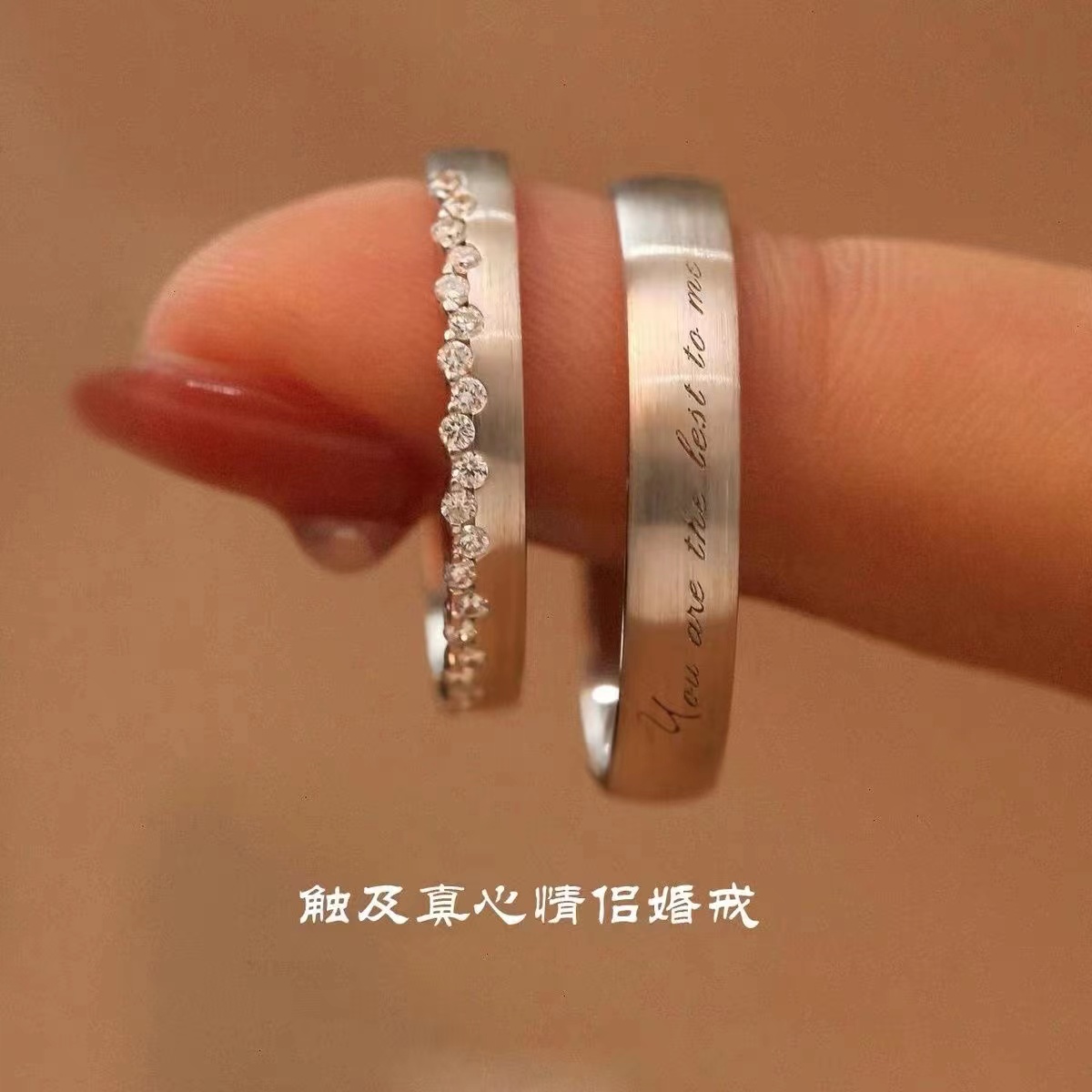 純銀戒指s999情侶對戒足銀愛相擁開口學生一對男女刻字送女友禮物