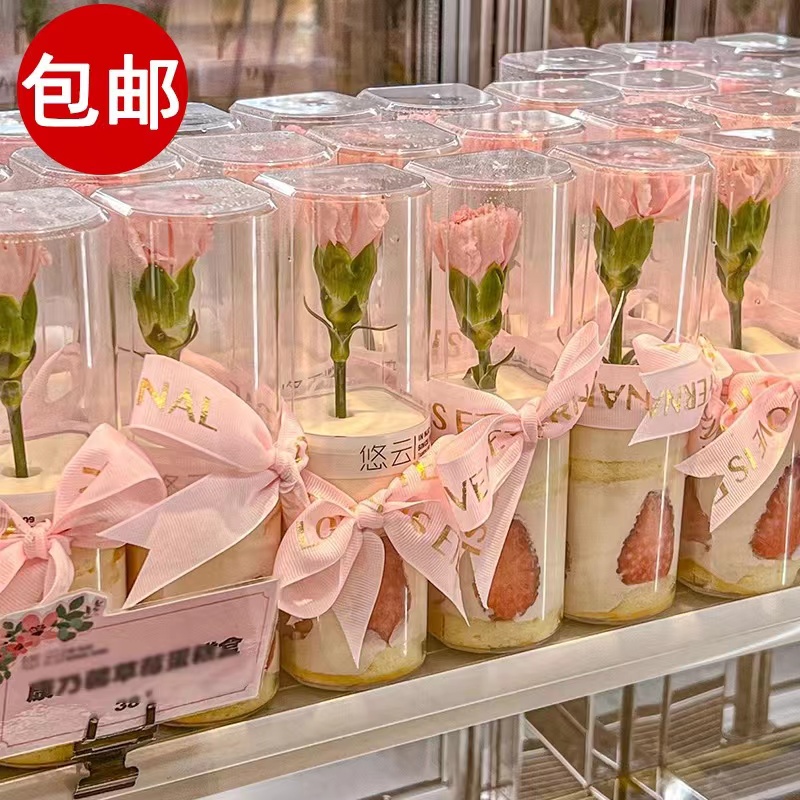 網紅母親節蛋糕裝飾手捧玫瑰康乃馨圓形直筒杯草莓慕斯杯手提袋