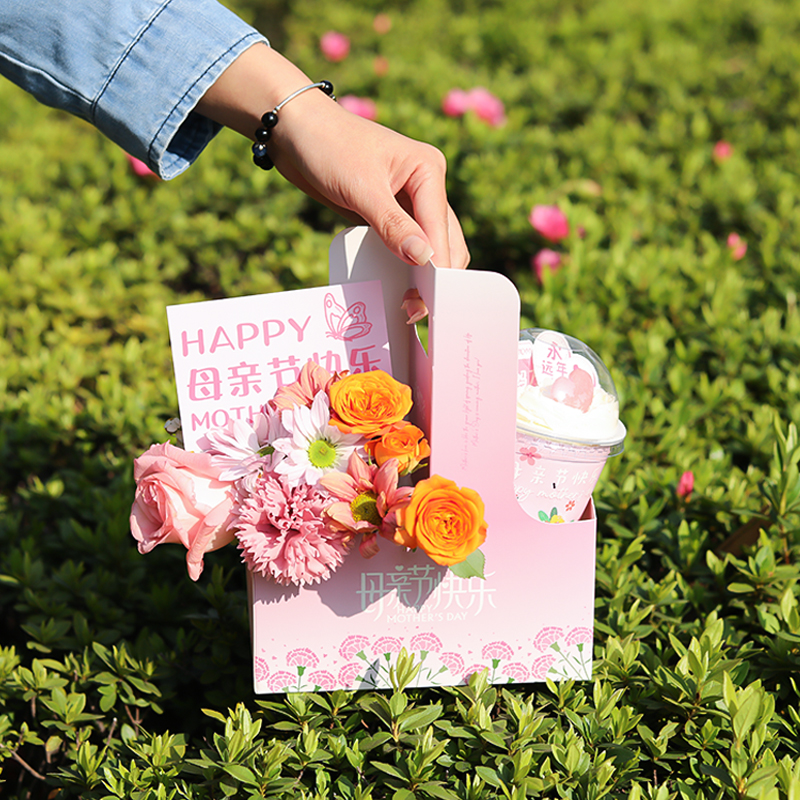 母親節手提花盒波波杯蛋糕裝飾媽媽節日快樂包裝盒鮮花花束禮品盒