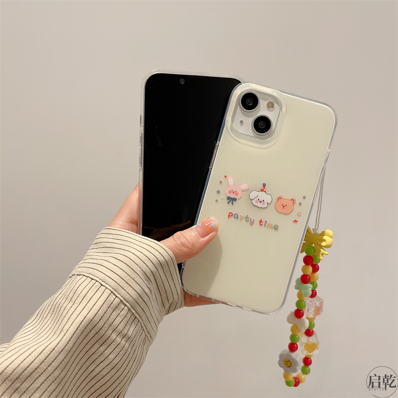 小熊狗狗兔子鏈條手繩iphone14手機殼適用蘋果13promax硬殼12/11日韓小眾可愛卡通女新款米黃色啟乾
