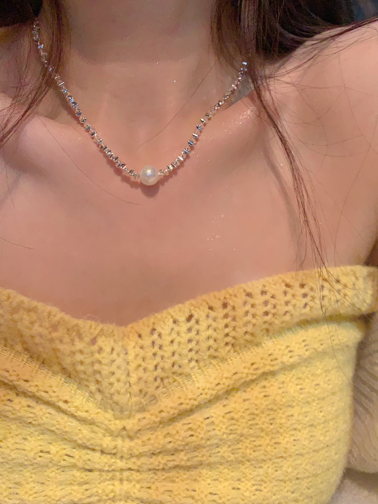 高品質!碎銀子珍珠項鏈2023新款爆款高級設計感輕奢小眾鎖骨鏈女