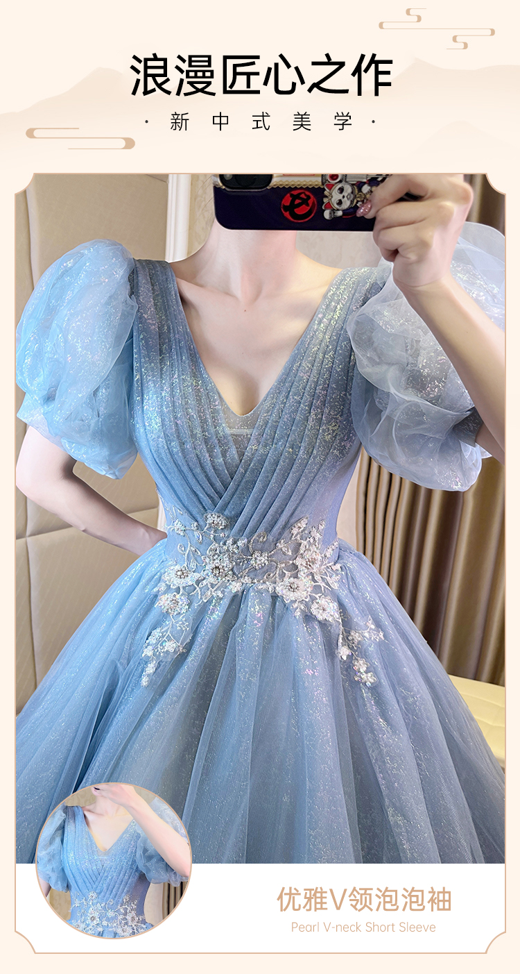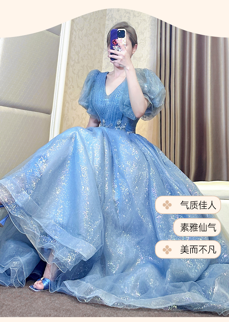 輕奢晚禮服女高級感2023新款畢業超仙18歲成人禮藝考主持人輕婚紗