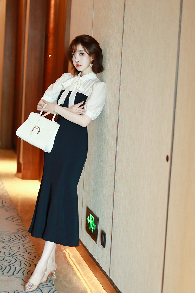 黑與白撞色猶如抹胸小禮裙,