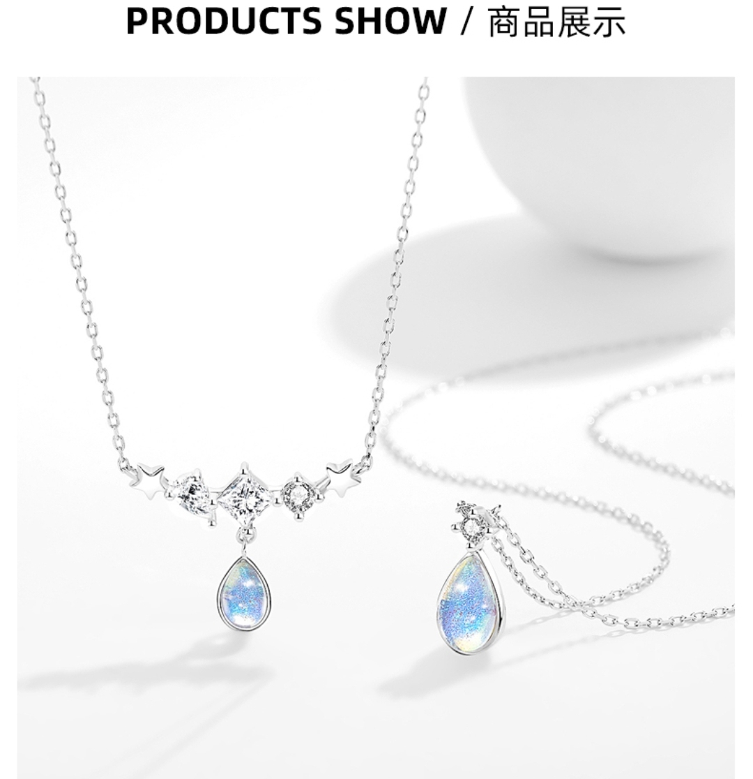天使眼淚月光石水滴925夏天鎖骨鏈