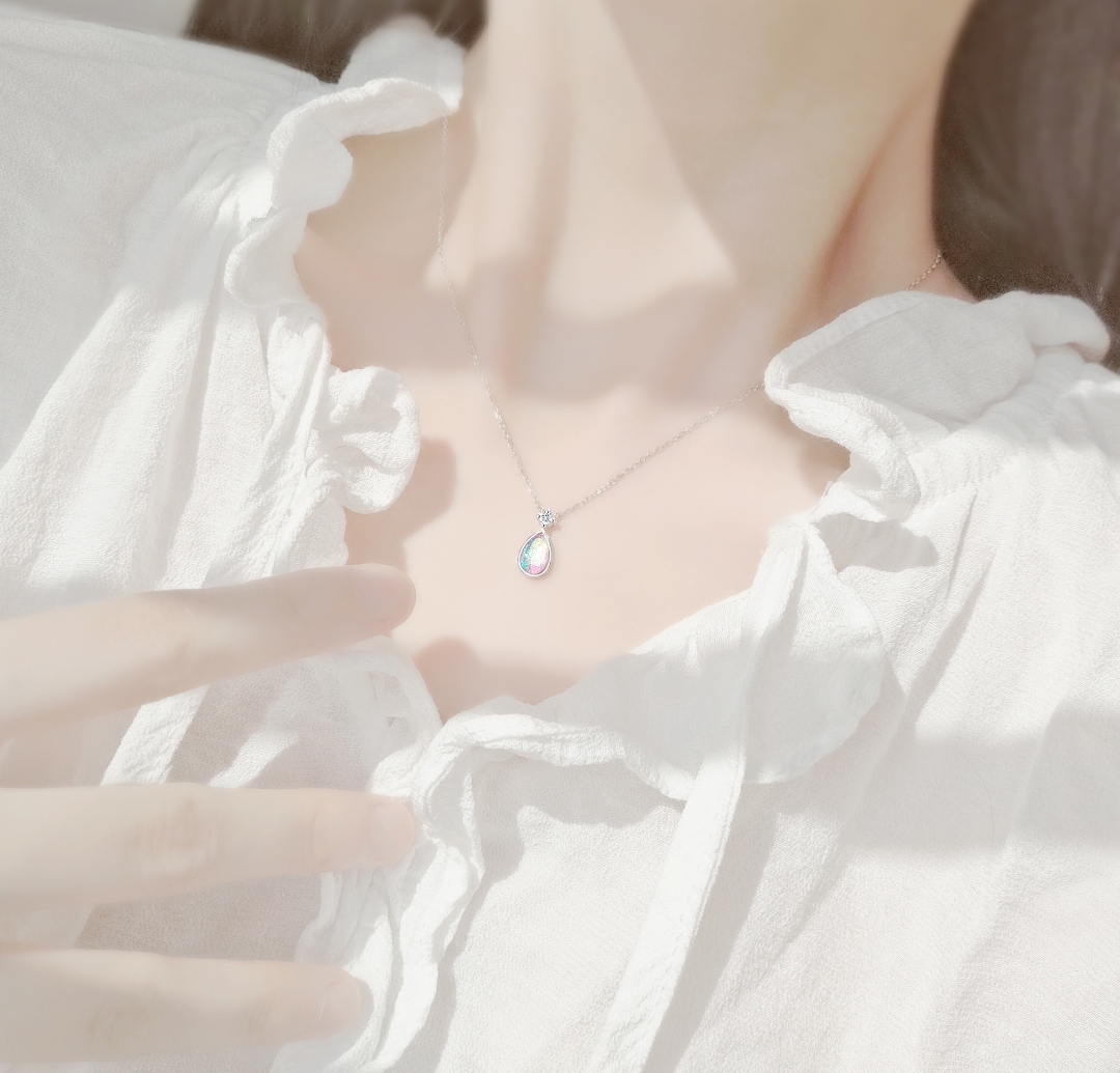 LUCKYZHY人魚淚滴彩色星空琉璃S925純銀項鏈簡約輕奢小眾鎖骨鏈