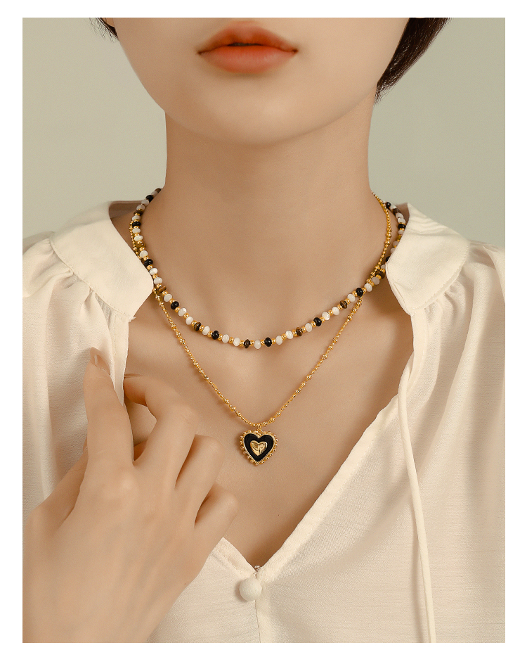 琥珀琉璃串珠項鏈女輕奢復古小眾高級感2023新款鍍18K金鎖骨頸鏈