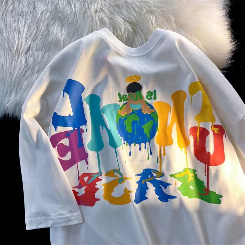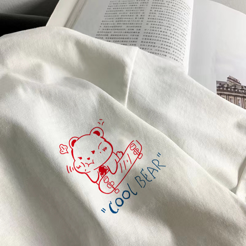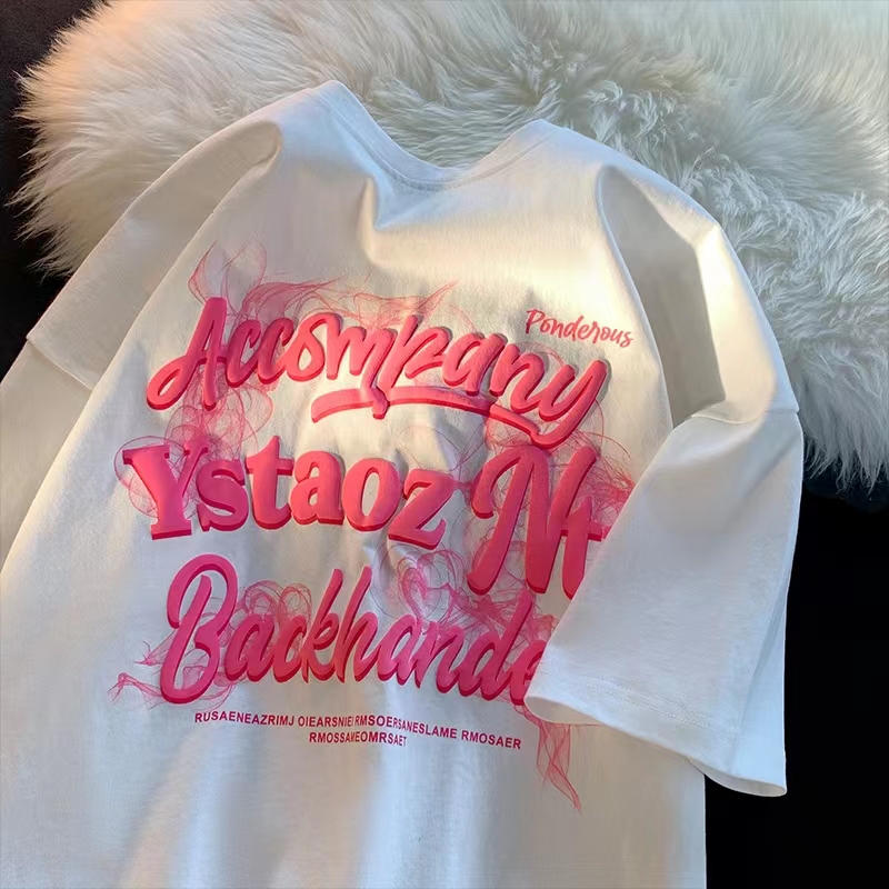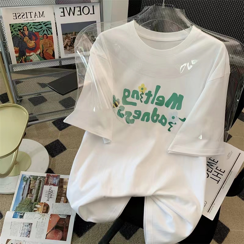 卡通字母印花圓領T恤女夏季2023新款韓版復古chic寬松百搭短袖潮