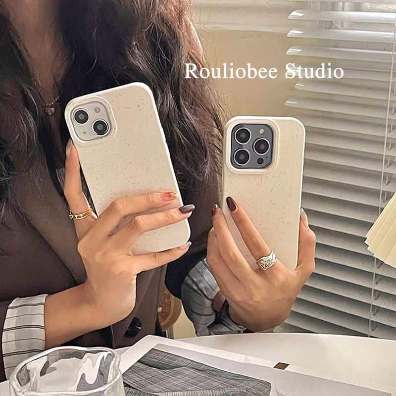 環保可降解小麥粒14手機殼適用iphone13純色簡約12高級感11小清新夏天情侶xs小眾蘋果14promax保護套XR男女款