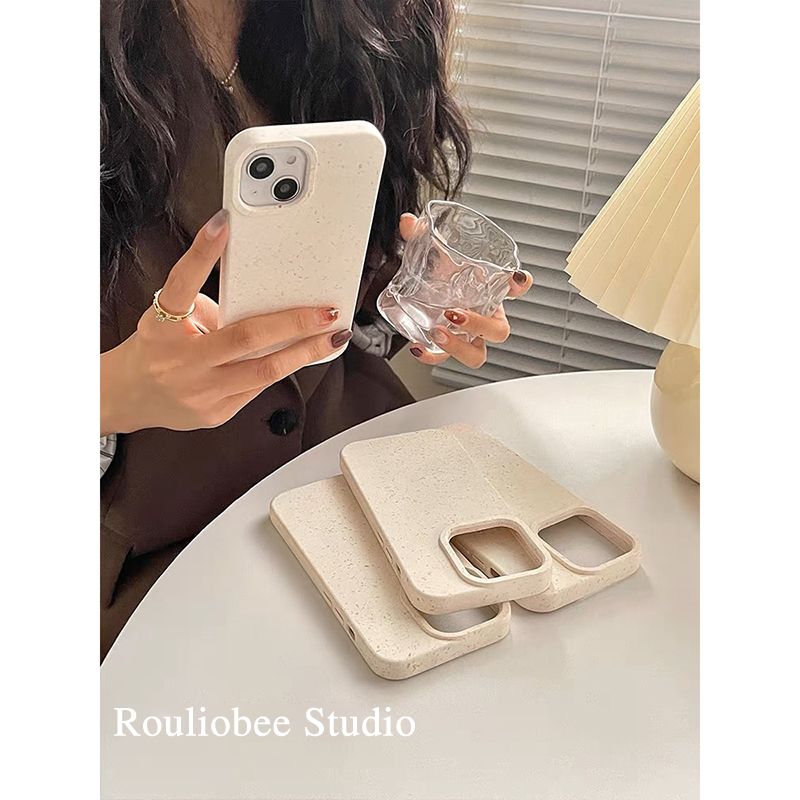 簡約環保小麥米白色適用iphone14promax手機殼11蘋果13新款12情侶創意x男xs女xr環保可降解13pro硅膠全包軟殼