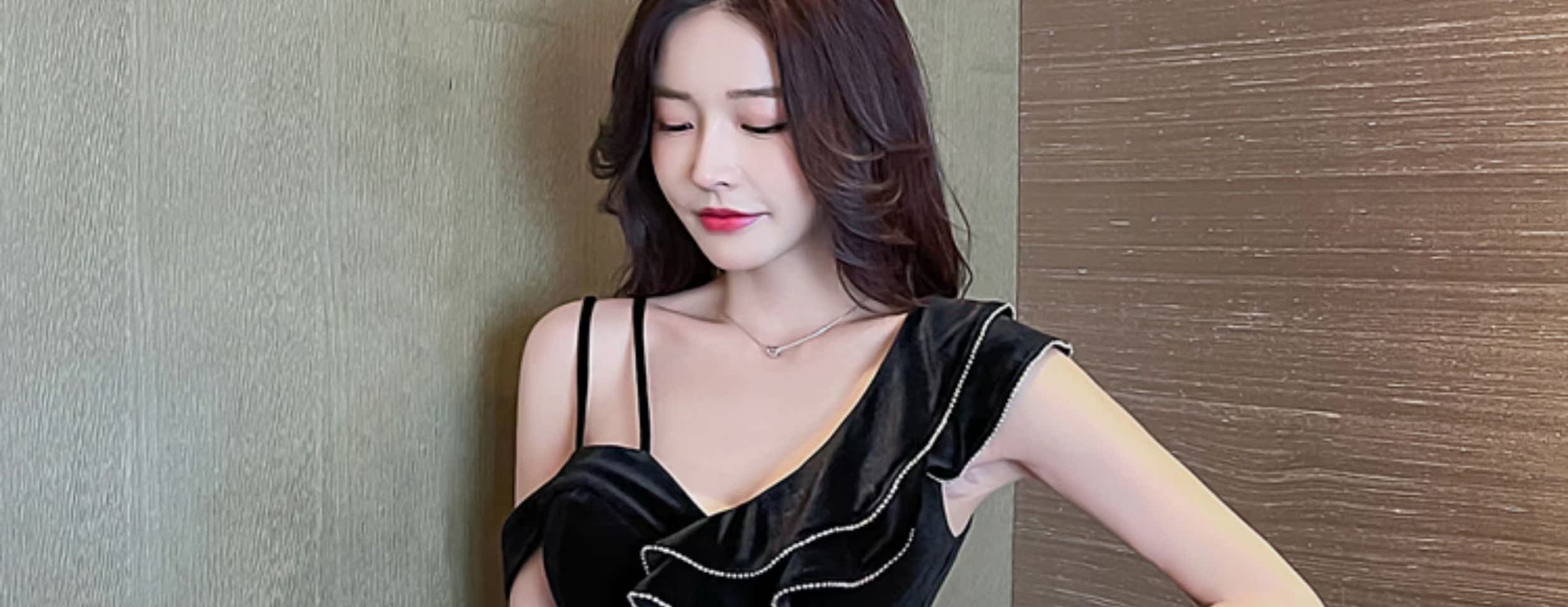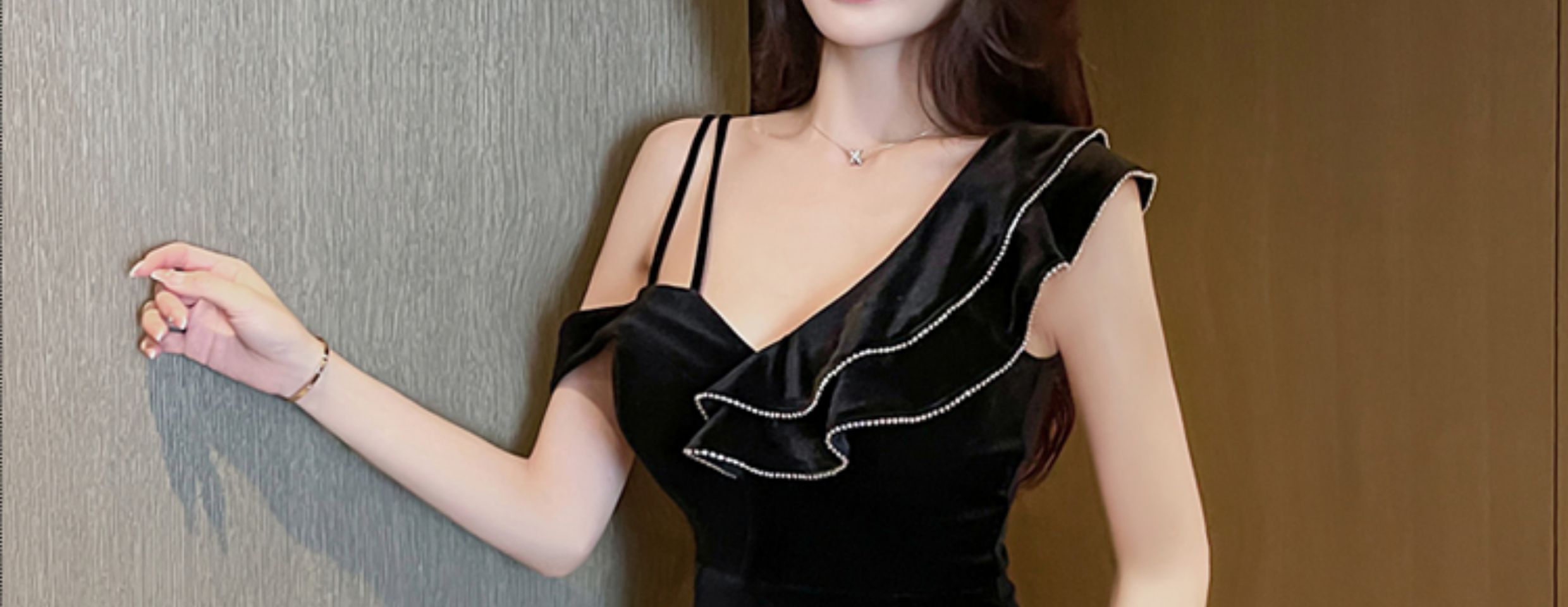 性感晚禮服單肩荷葉無袖魚尾連衣裙長裙名媛氣質高端宴會禮服裙女