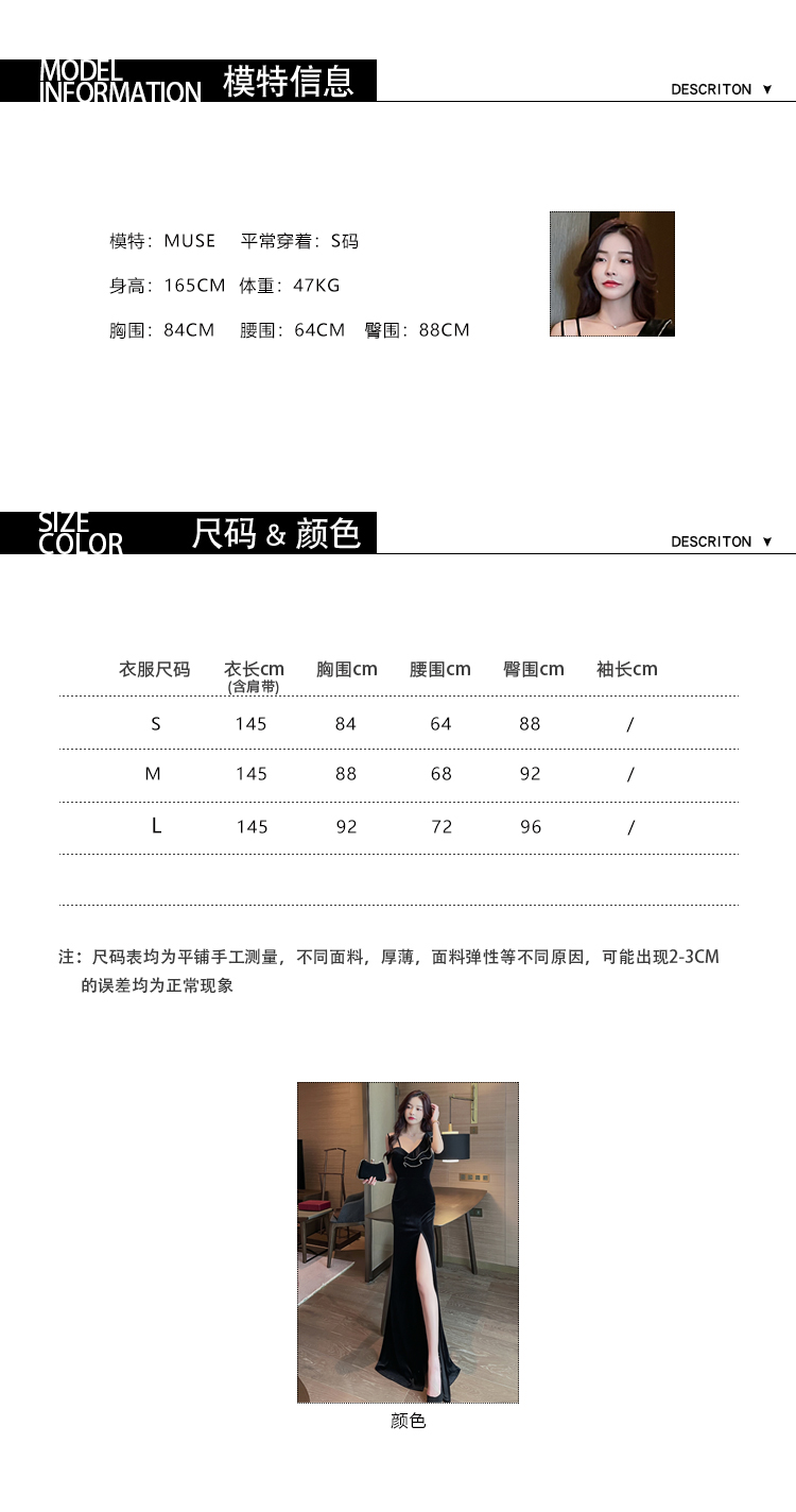 性感吊帶露背短袖連衣裙修身顯瘦低胸氣質鑲鉆高級感晚禮服長款女