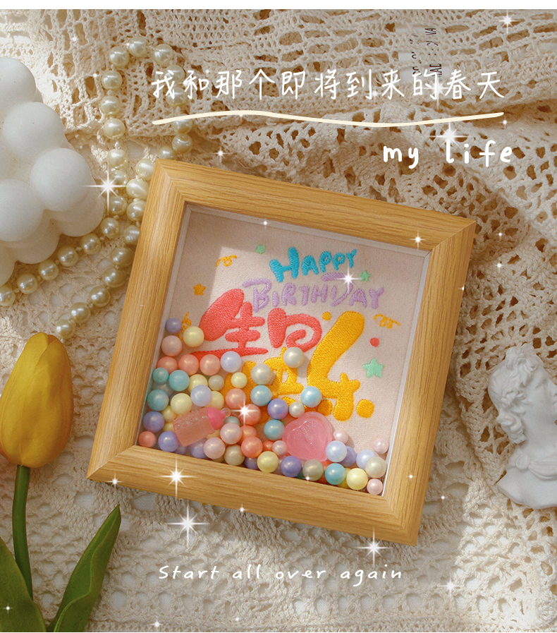 2023新款刺繡十字繡線繡生日快樂小件客廳臥室簡單新手手工半繡