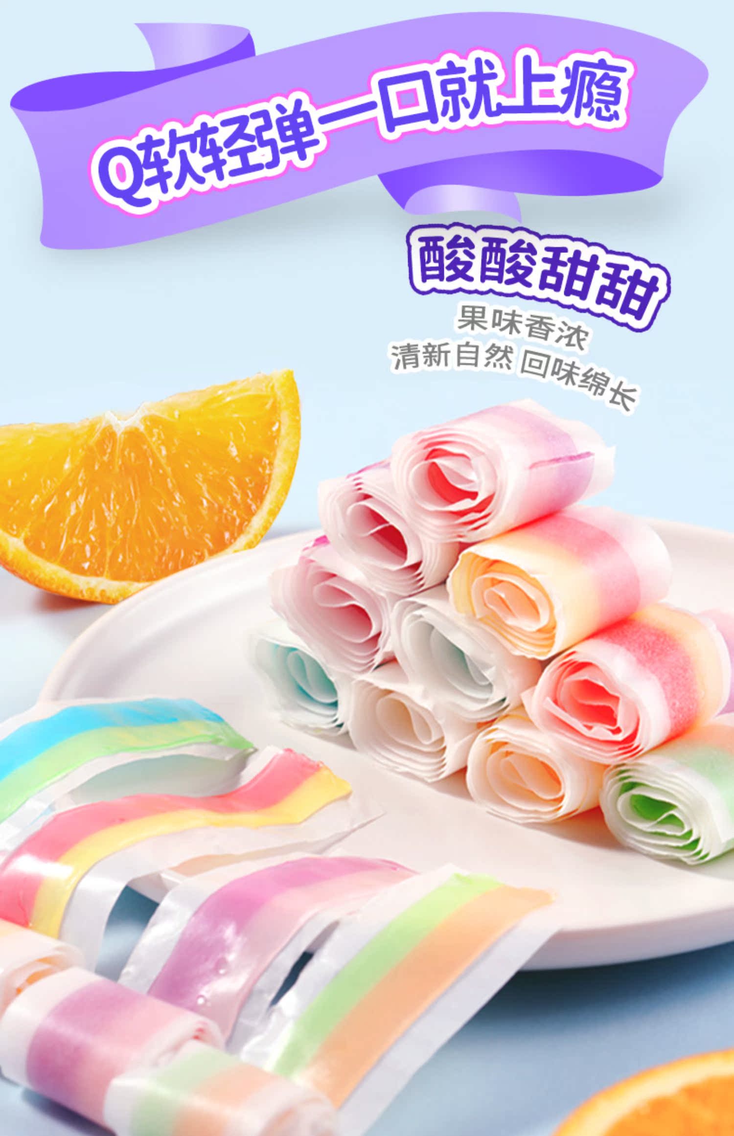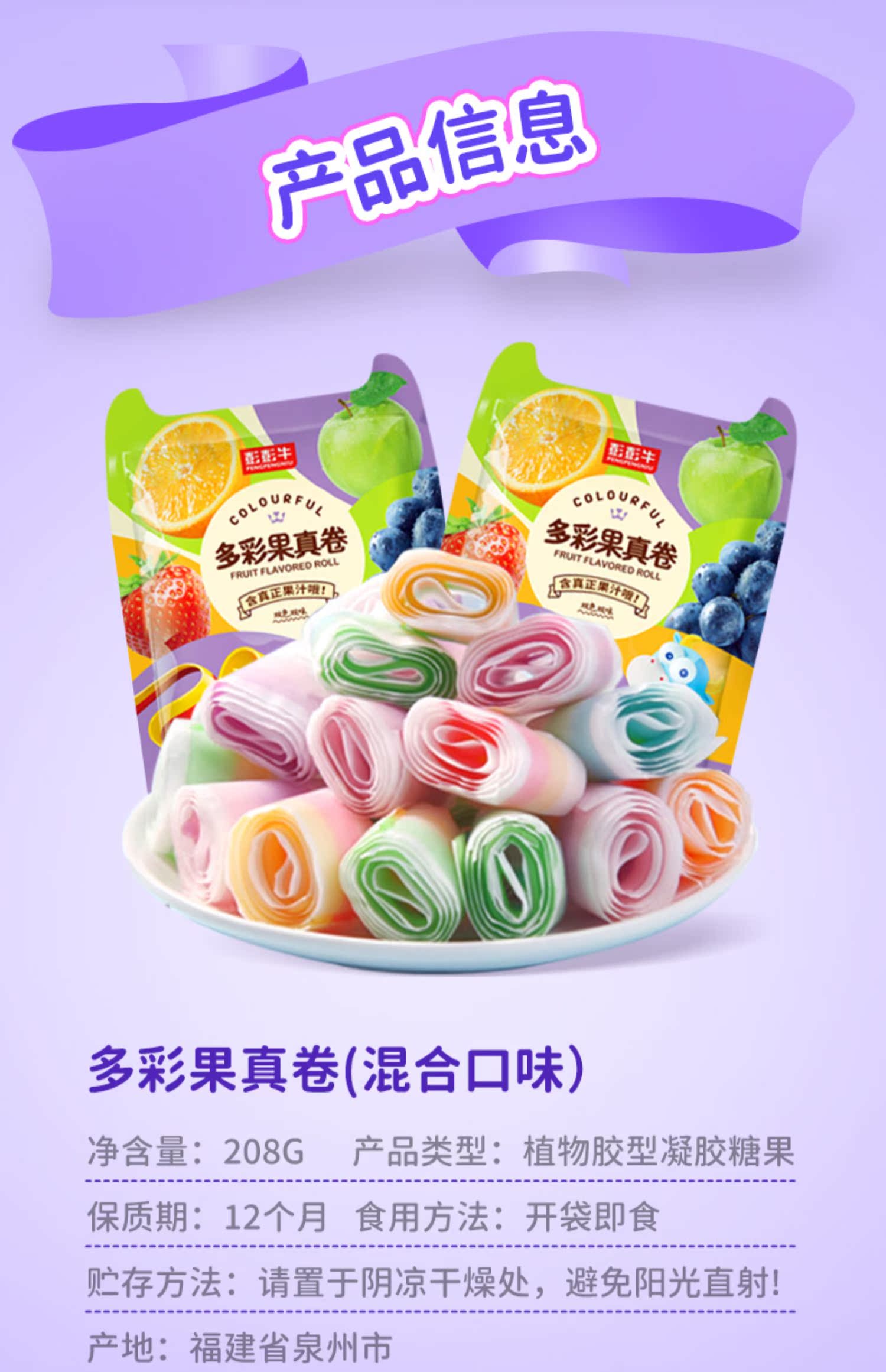 彭彭牛多彩果真卷水果紙卷糖奶糖六一兒童節零食散裝喜糖糖果禮物
