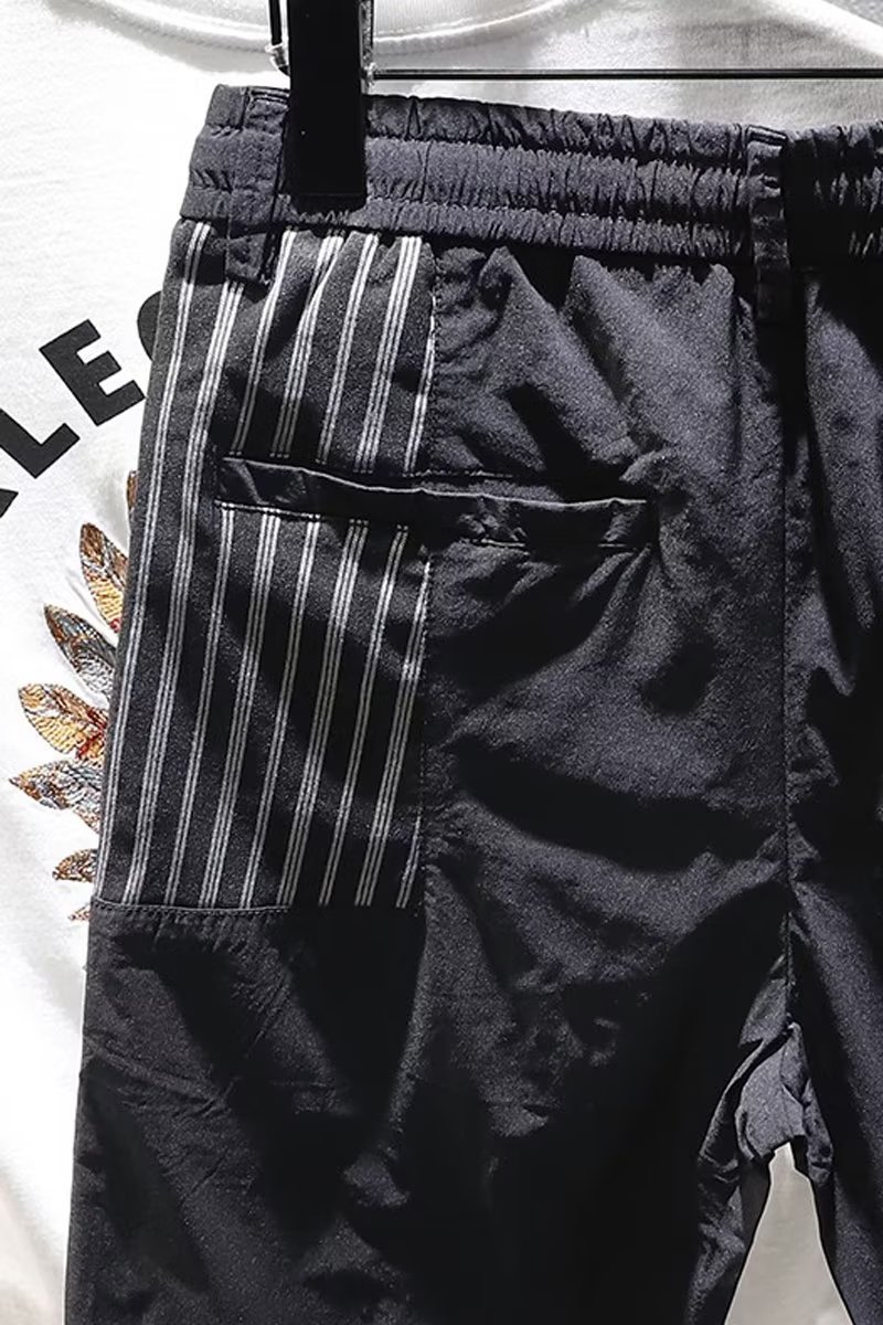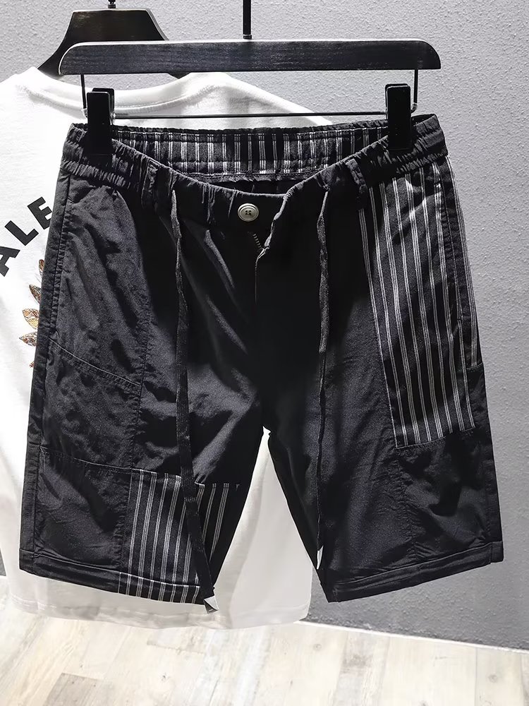 2023夏季新款條紋拼接休閑短褲男彈力腰帶青年男士抽繩五分褲潮