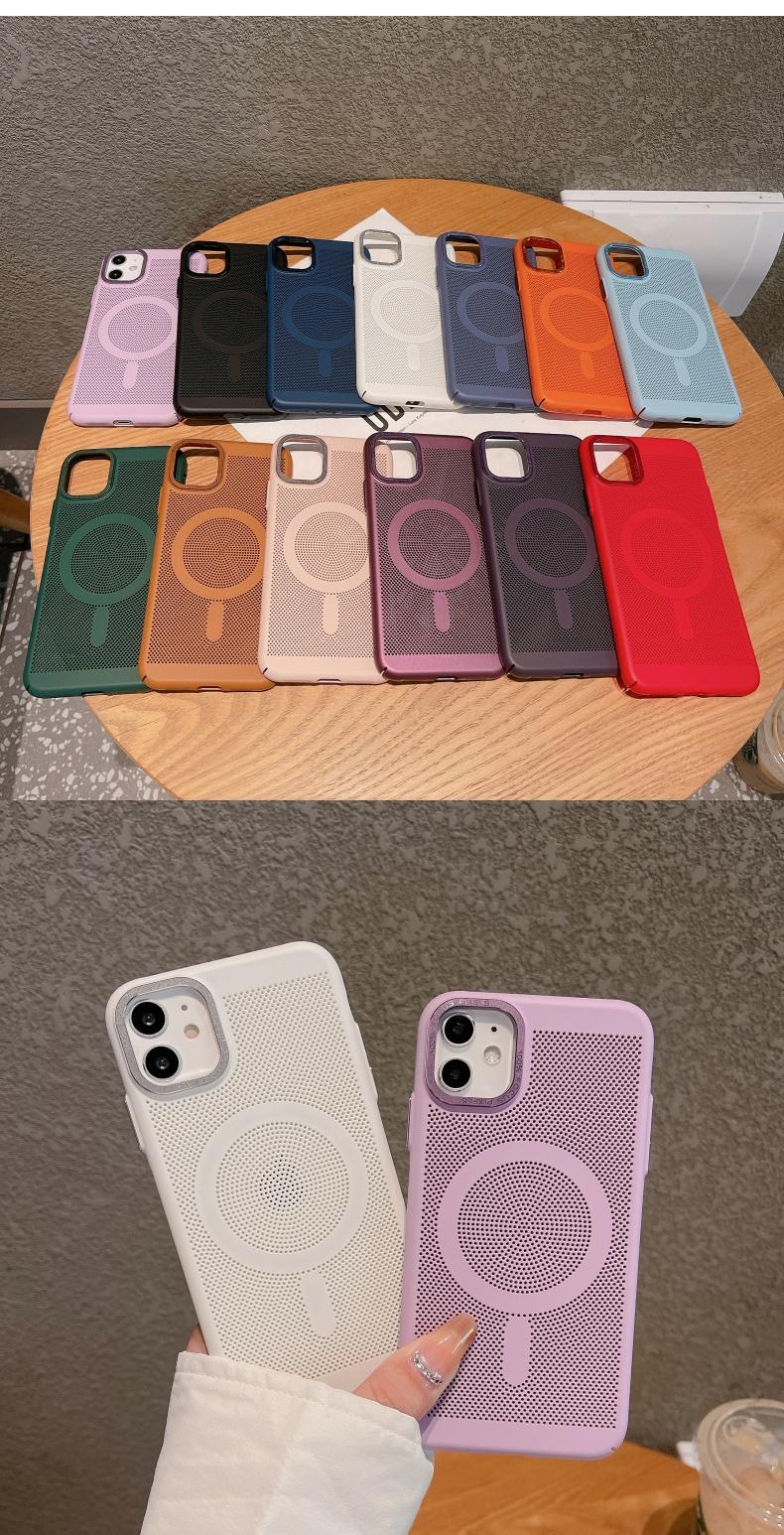 適用蘋果14Promax鋼碼散熱手機殼Magsafe磁吸散熱iPhone13保護套12全包超薄14plus輕薄手機殼11高級透氣殼