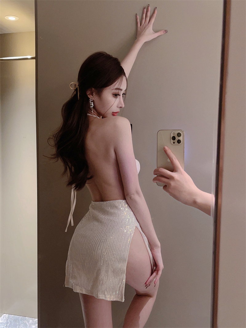 甜辣炸街性感露背鏤空掛脖連衣裙氣質名媛小個子禮服顯身材裙子夏