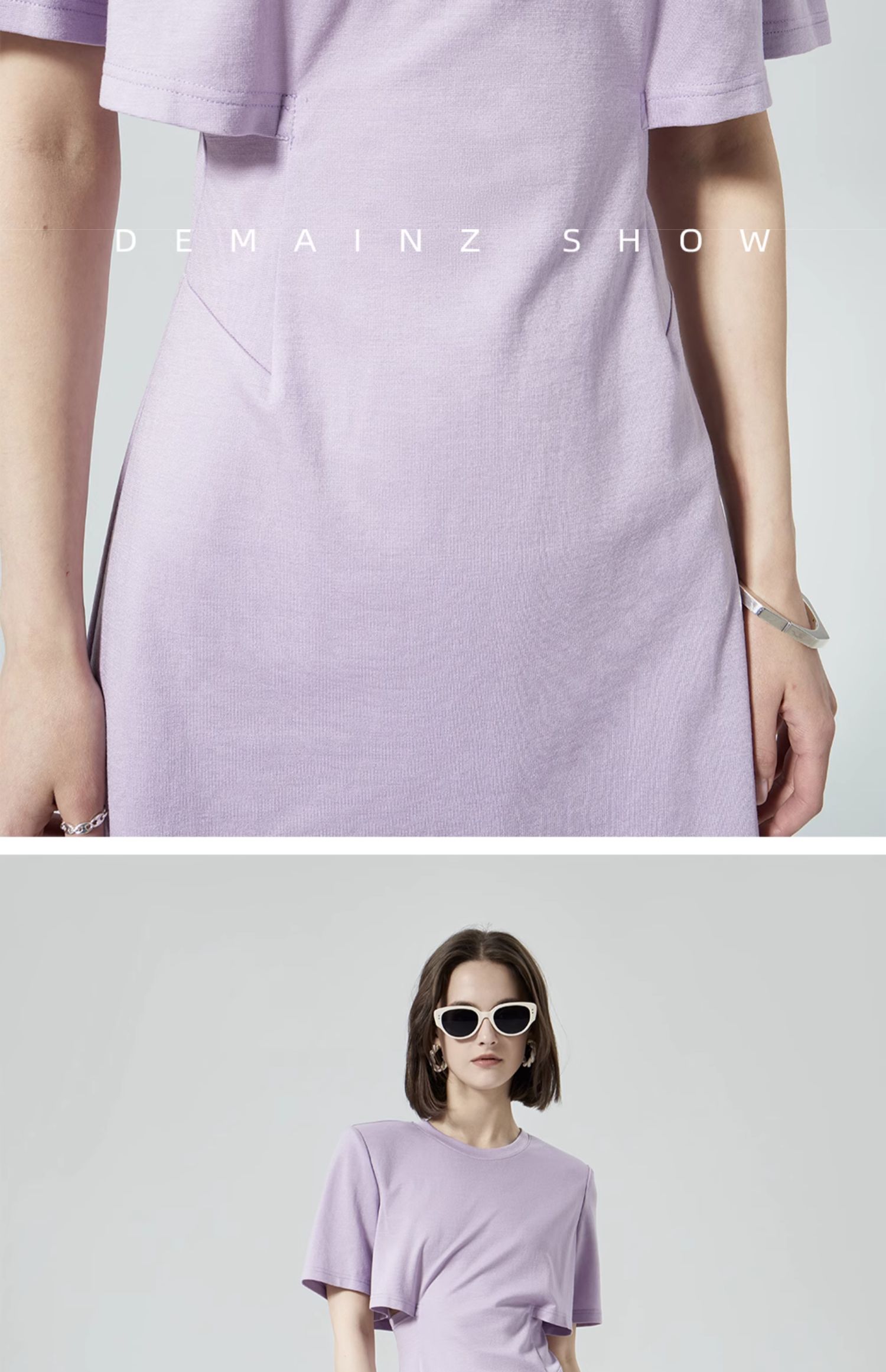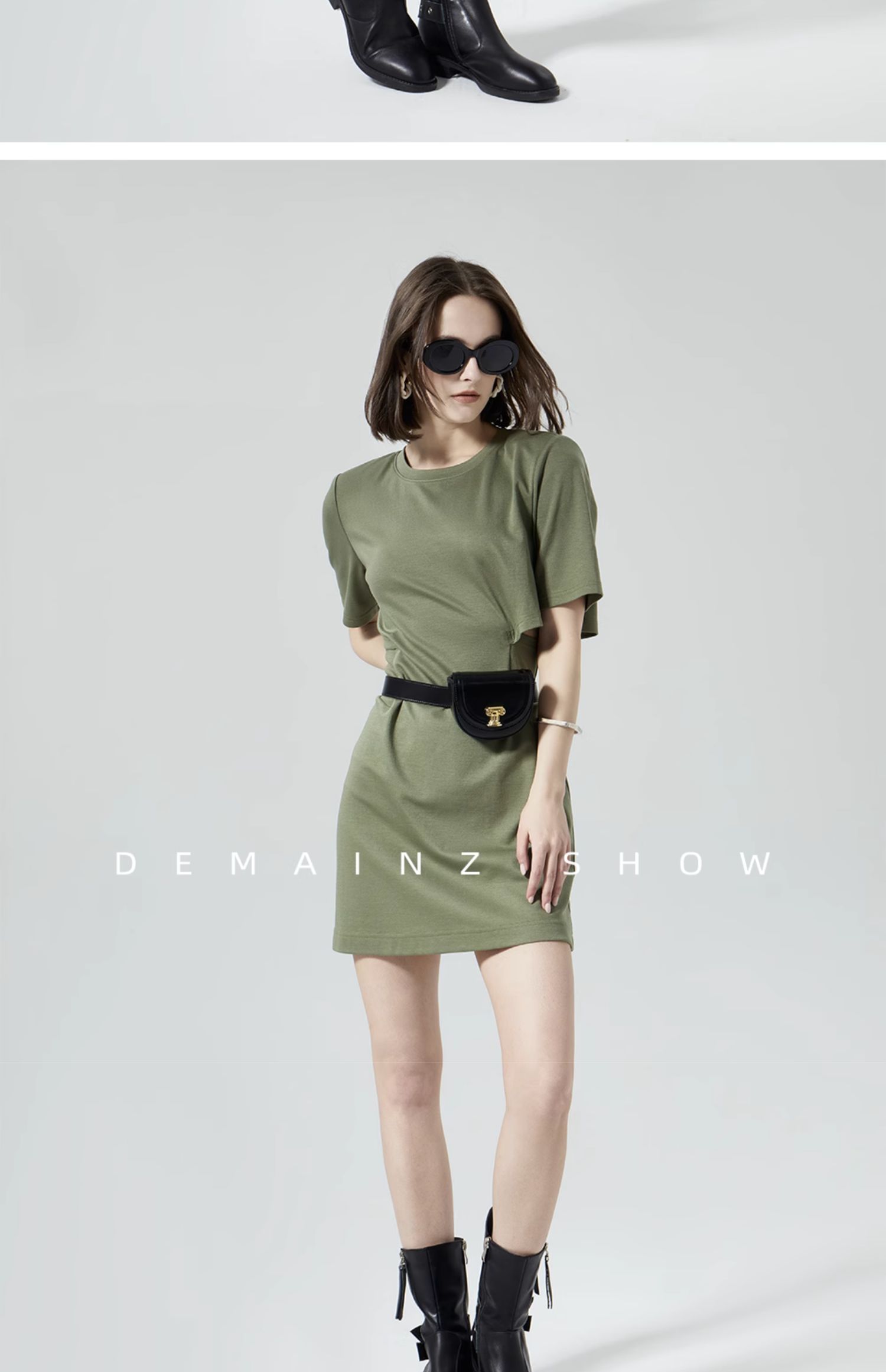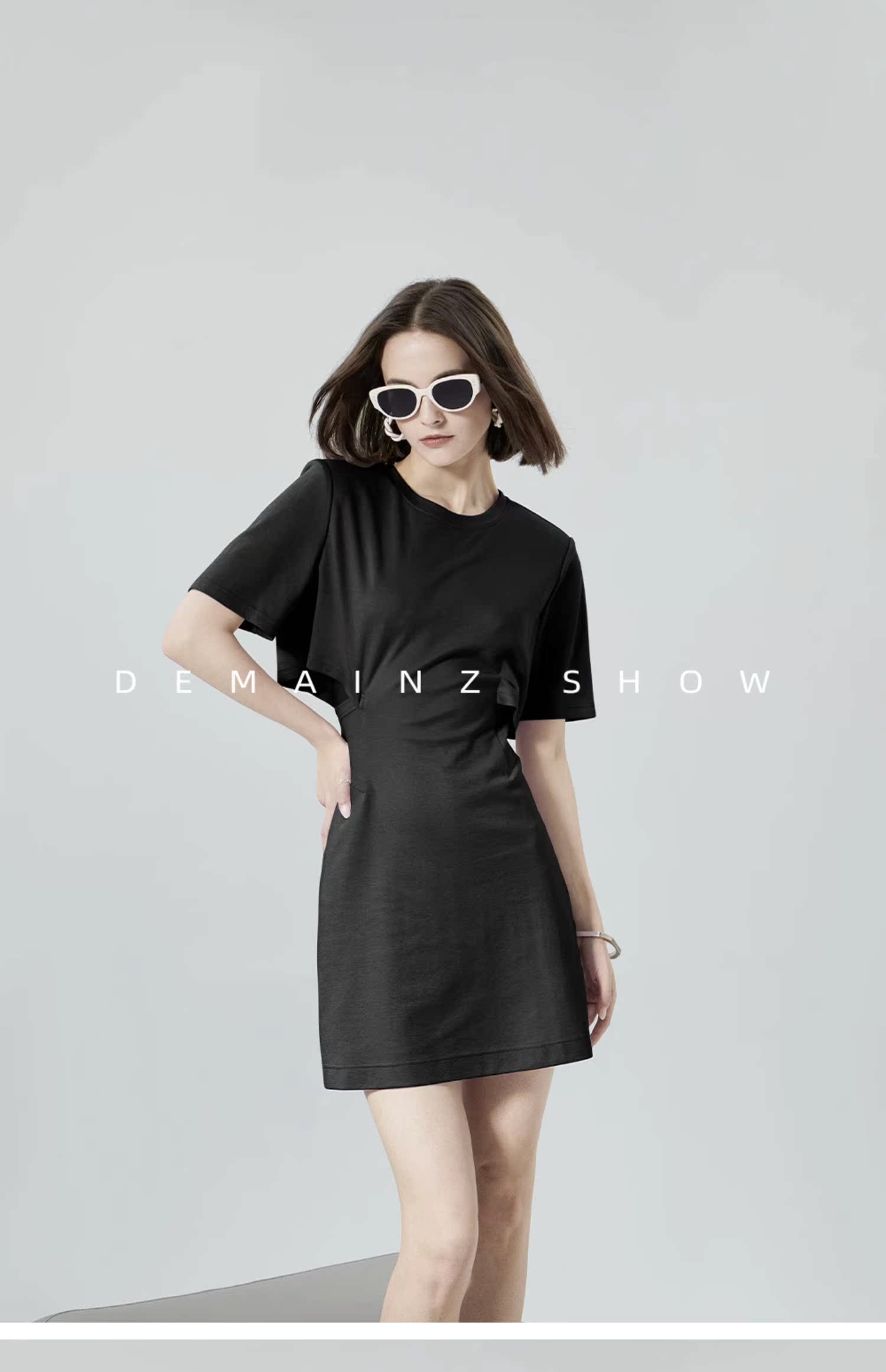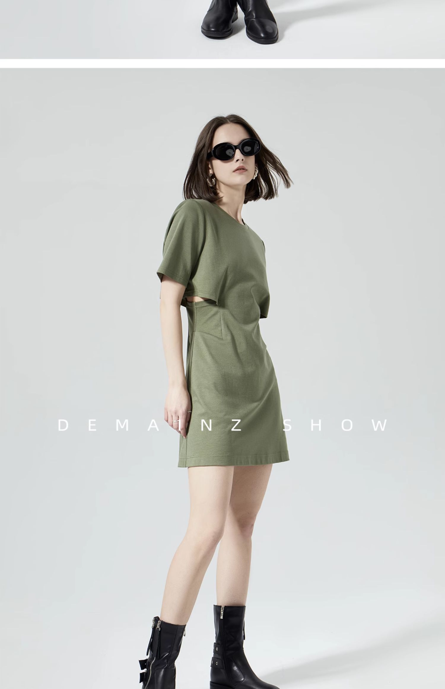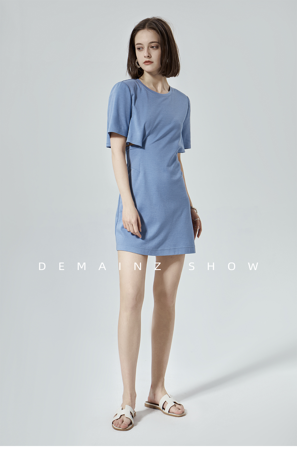 DEMAINZ地縵圓領短袖修身連衣裙夏季2023女套頭法式簡約純棉新款