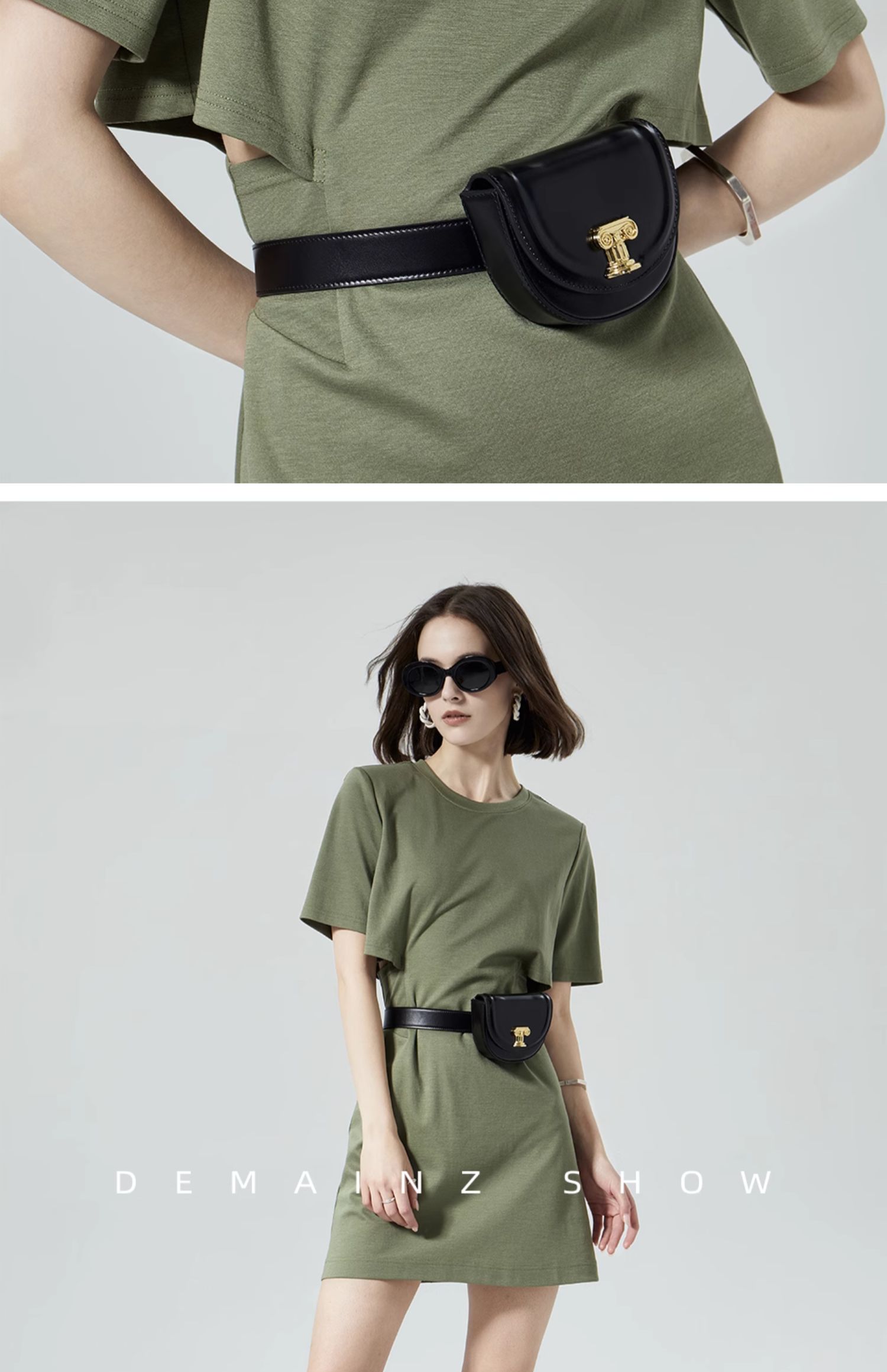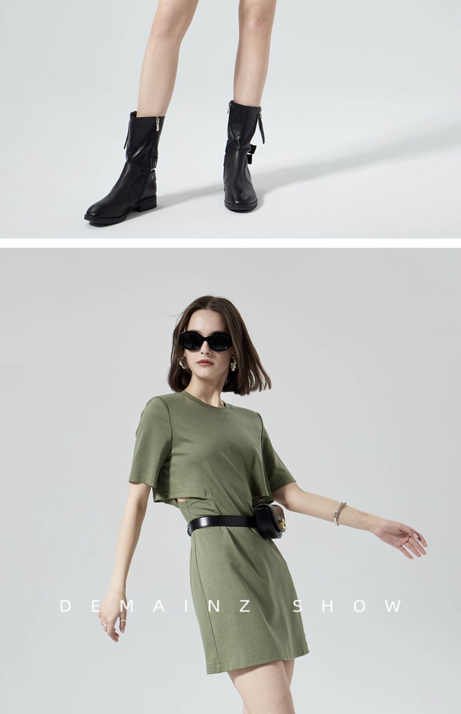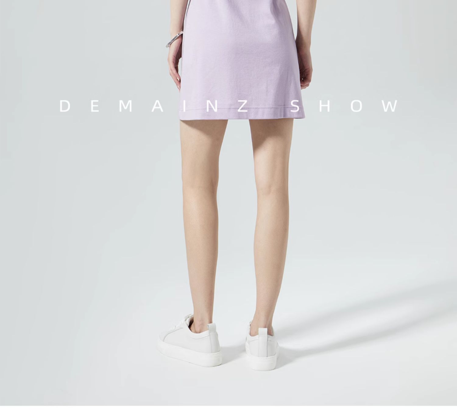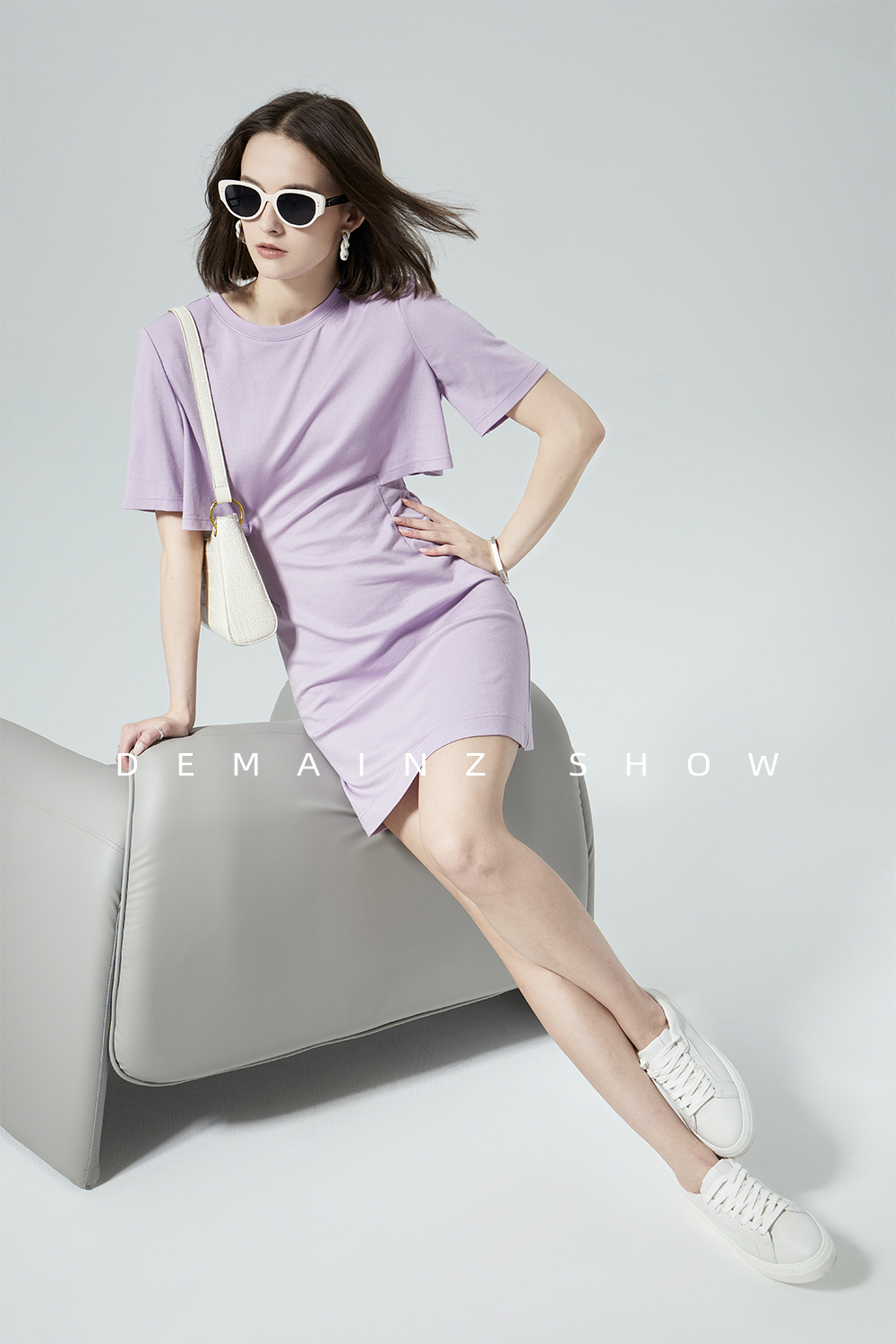 DEMAINZ地縵圓領短袖修身連衣裙夏季2023女套頭法式簡約純棉新款