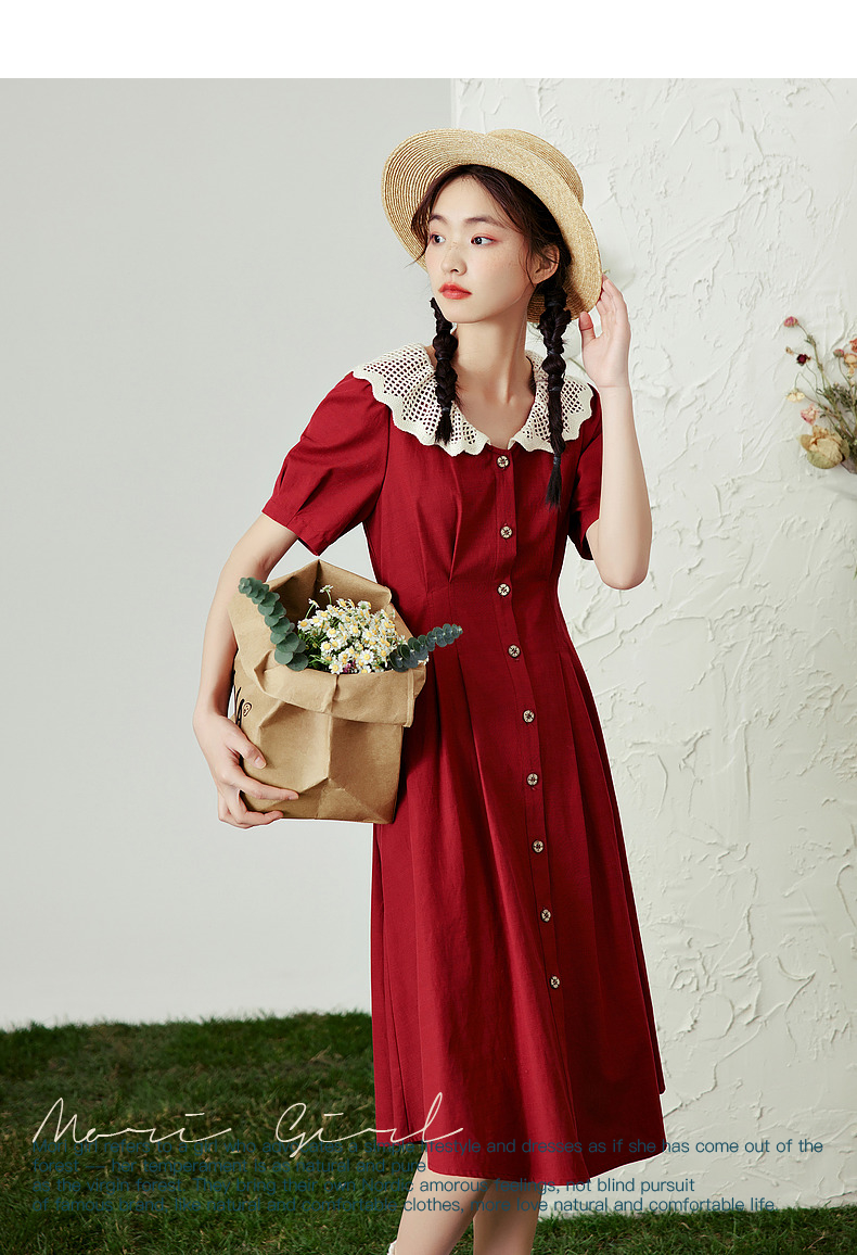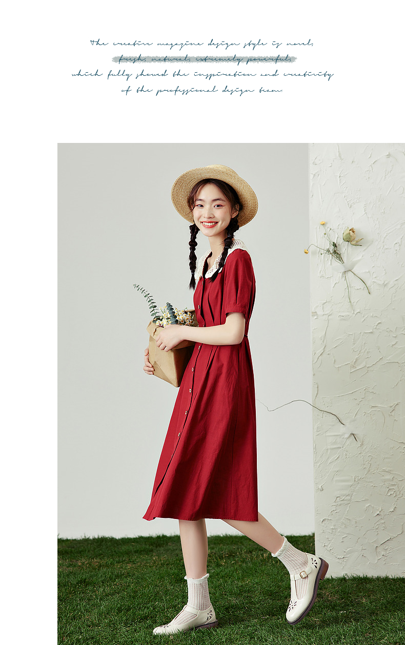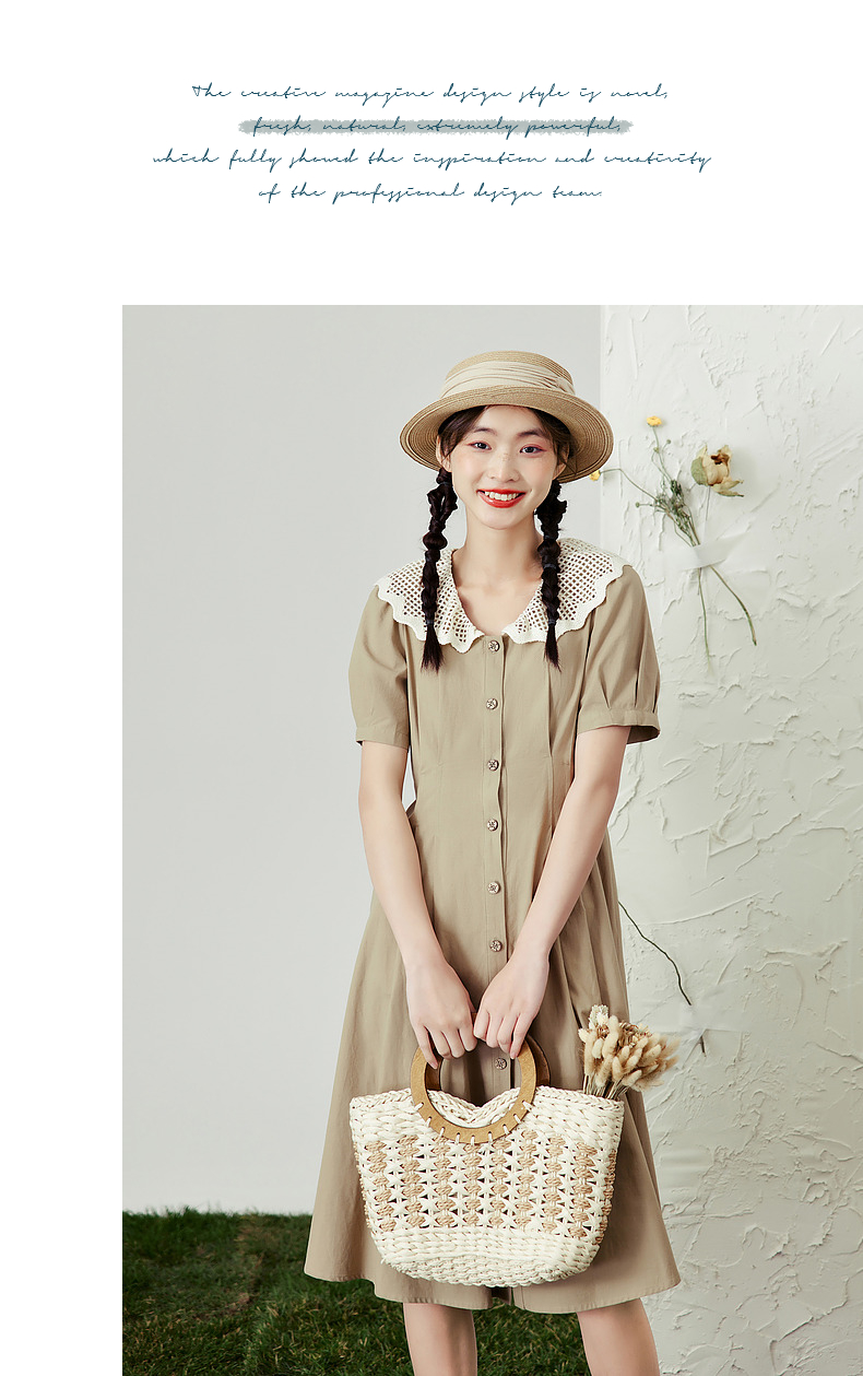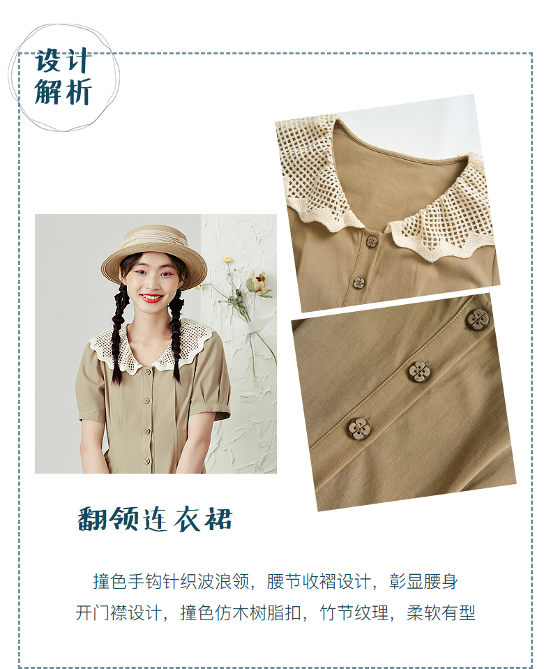 紫涵簡約一排扣連衣裙2023夏季新款女森系通勤收腰中長裙針織翻領