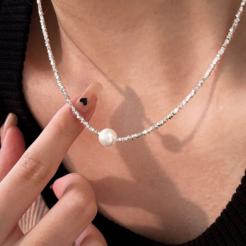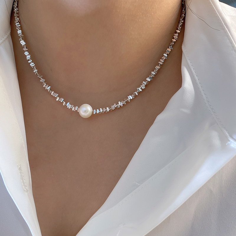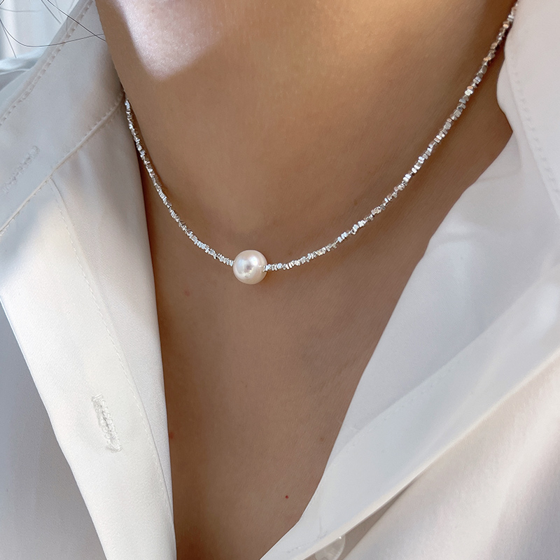 不規則碎銀幾兩項鏈女2023年新款設計感小眾高級珍珠吊墜鎖骨鏈女