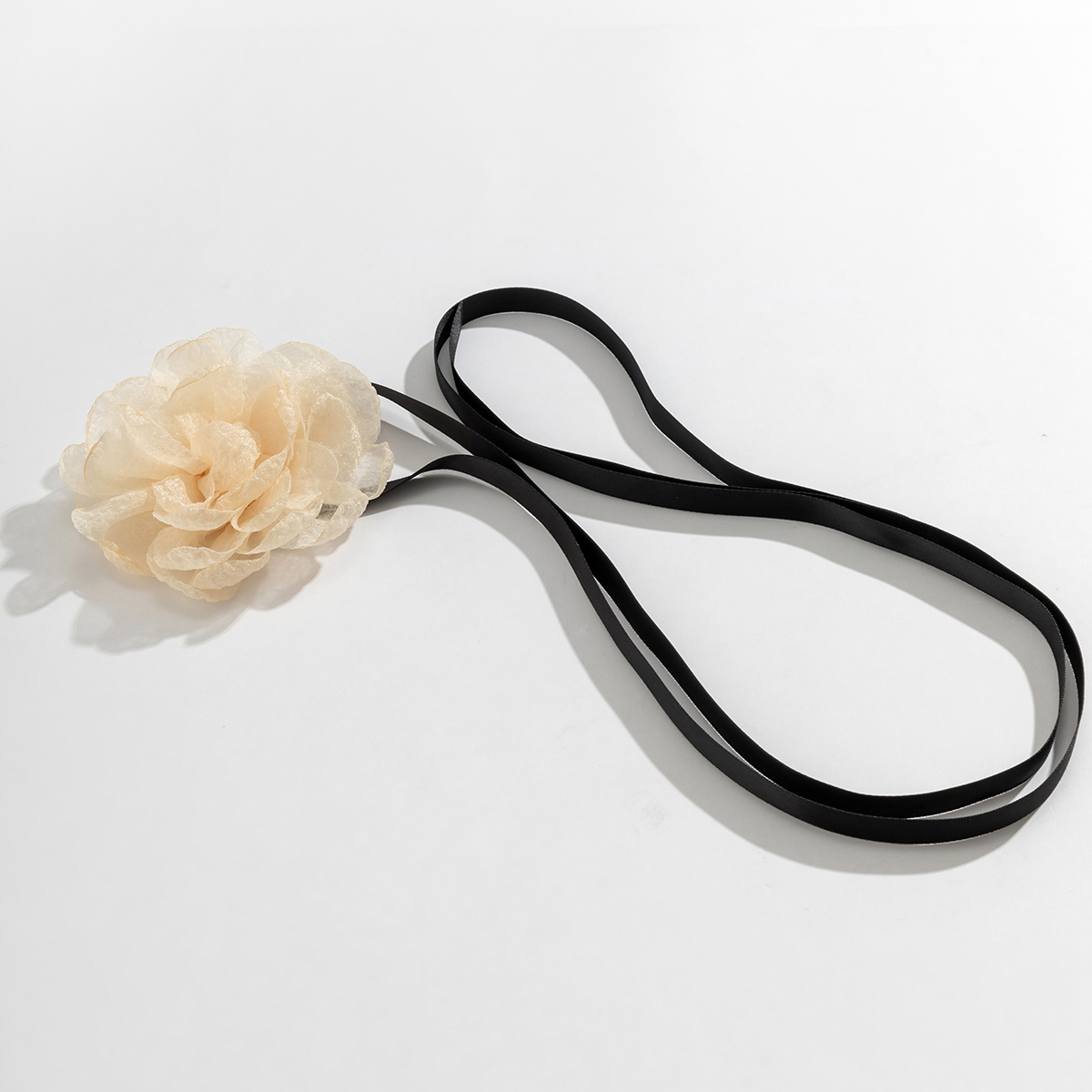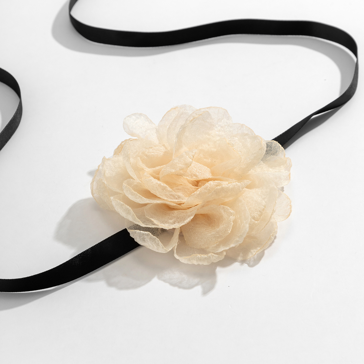 網紗花朵織帶項鏈女 自由打結小眾設計高級感鎖骨飄帶chocker配飾