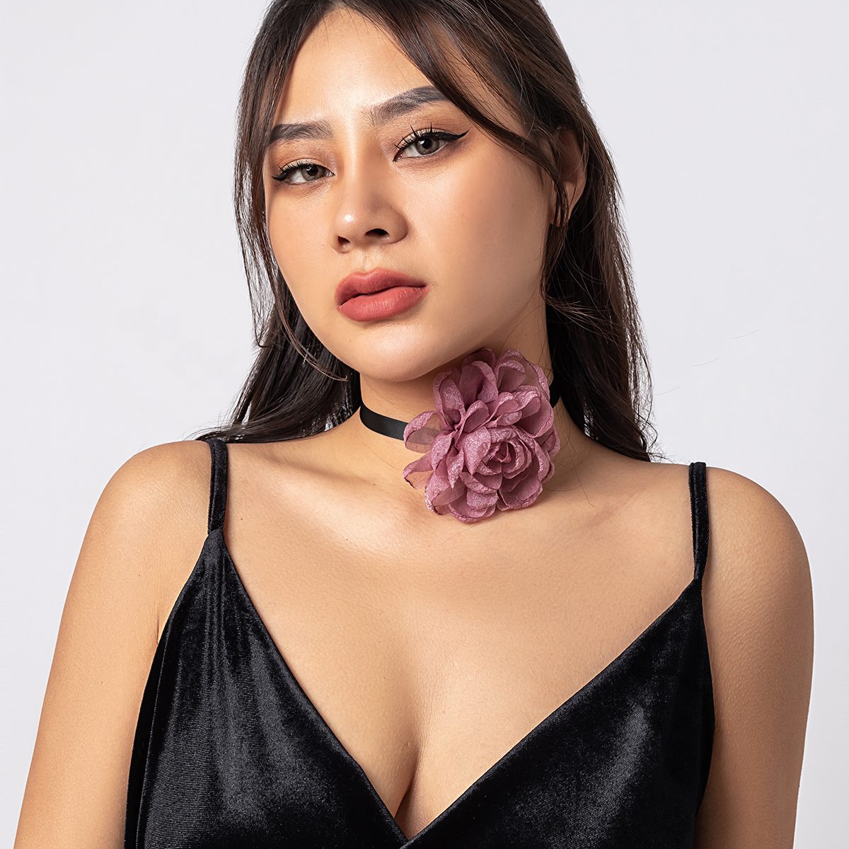 自制手工花朵多用綁帶暗黑系時尚個性頸飾腕花項鏈choker系脖頸花
