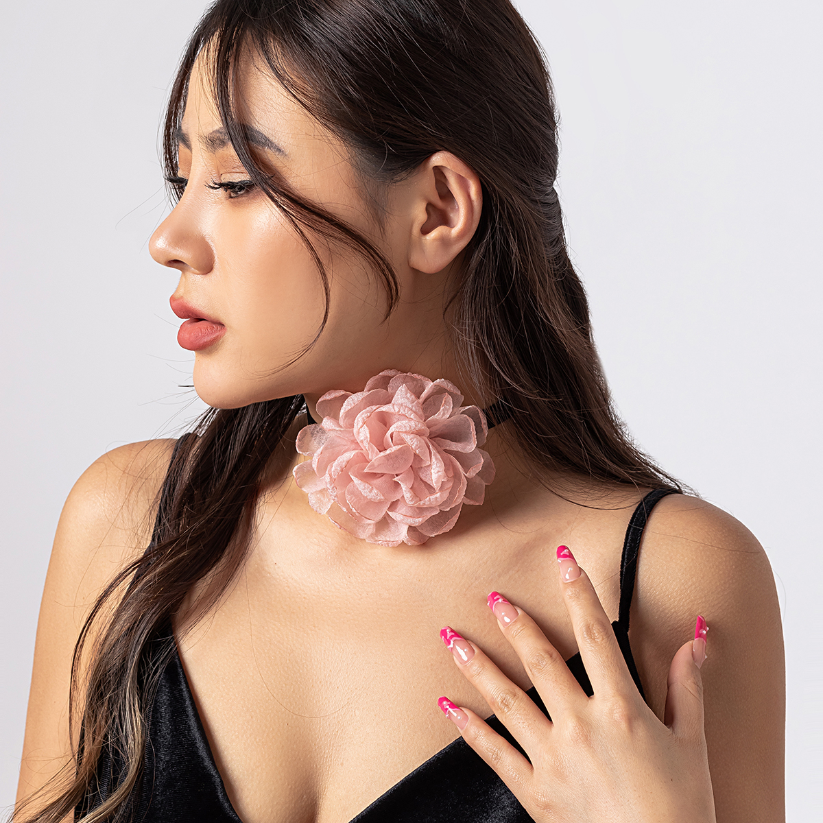 網紗花朵皮蠟線項鏈女歐美夏季性感時尚節日宴會可調節頸鏈配飾品