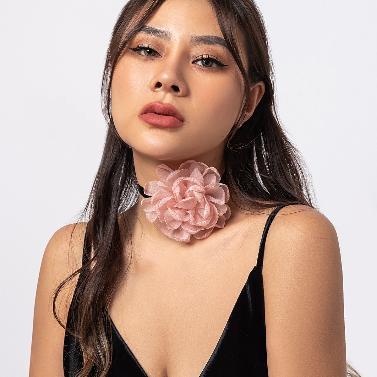 大號山茶花絨繩綁帶打結項鏈女 夏季時尚可愛甜美網紅旅拍配飾品