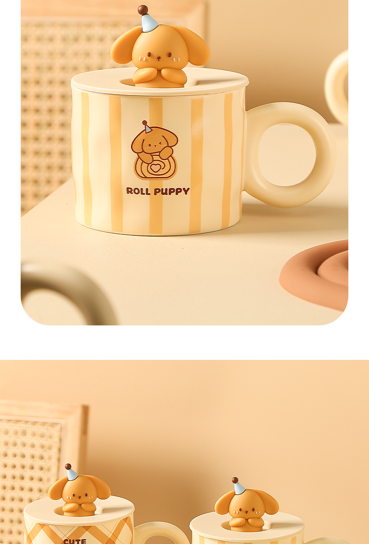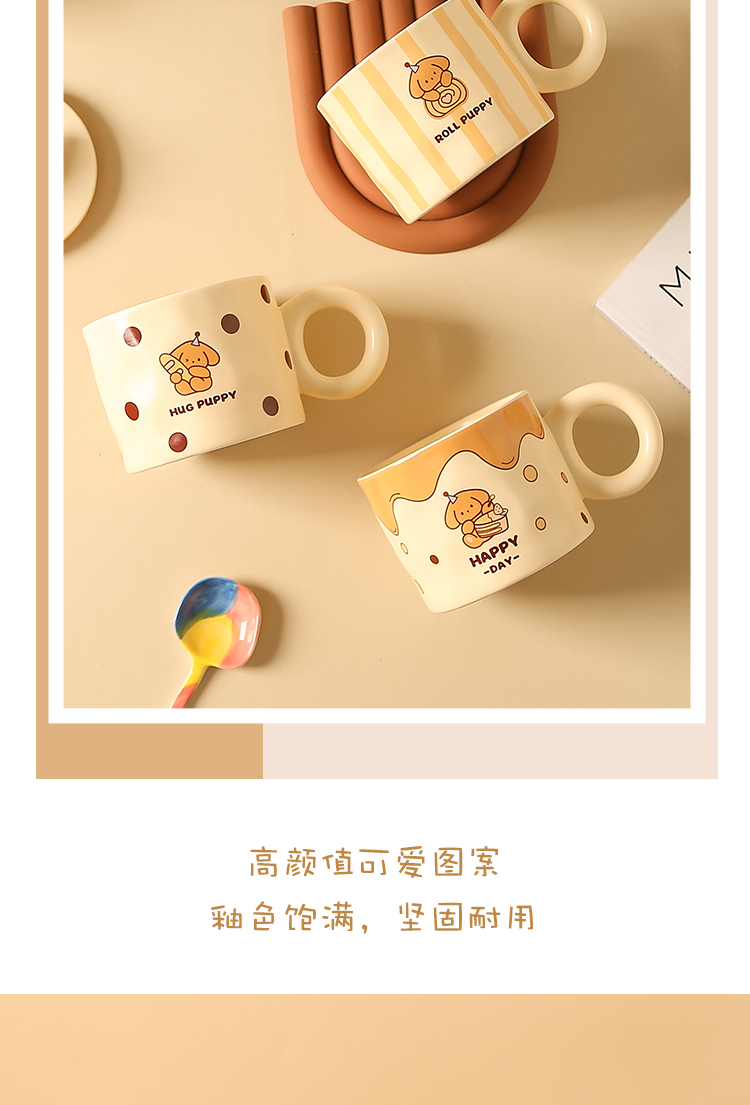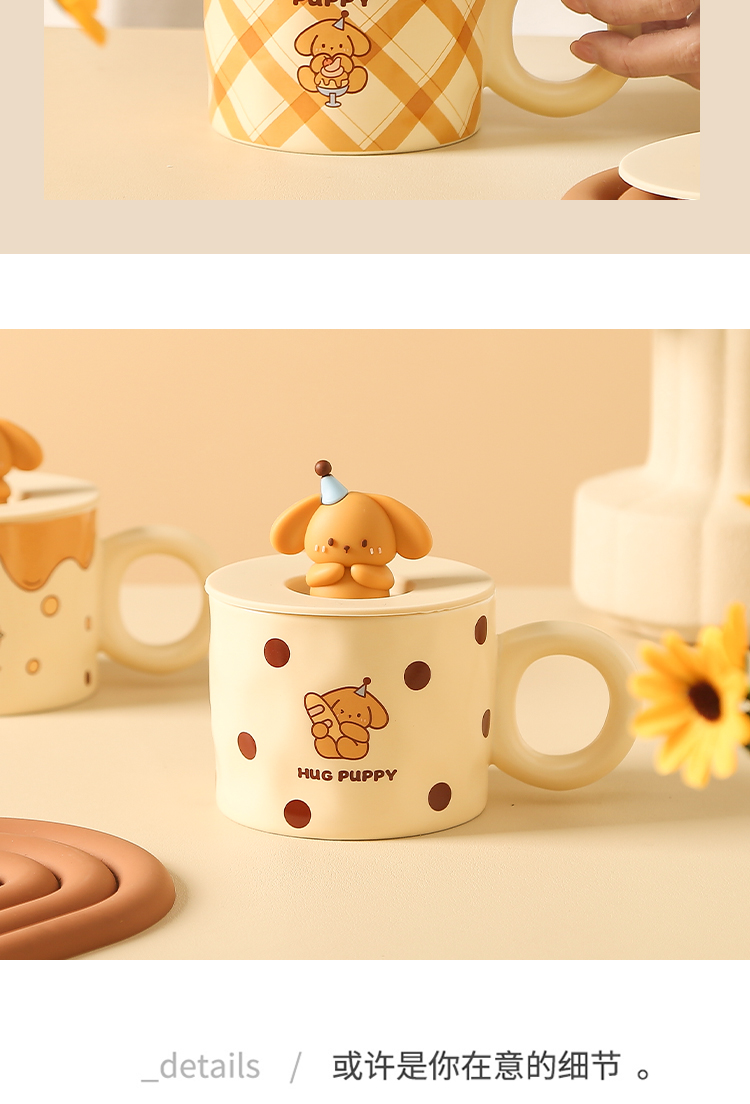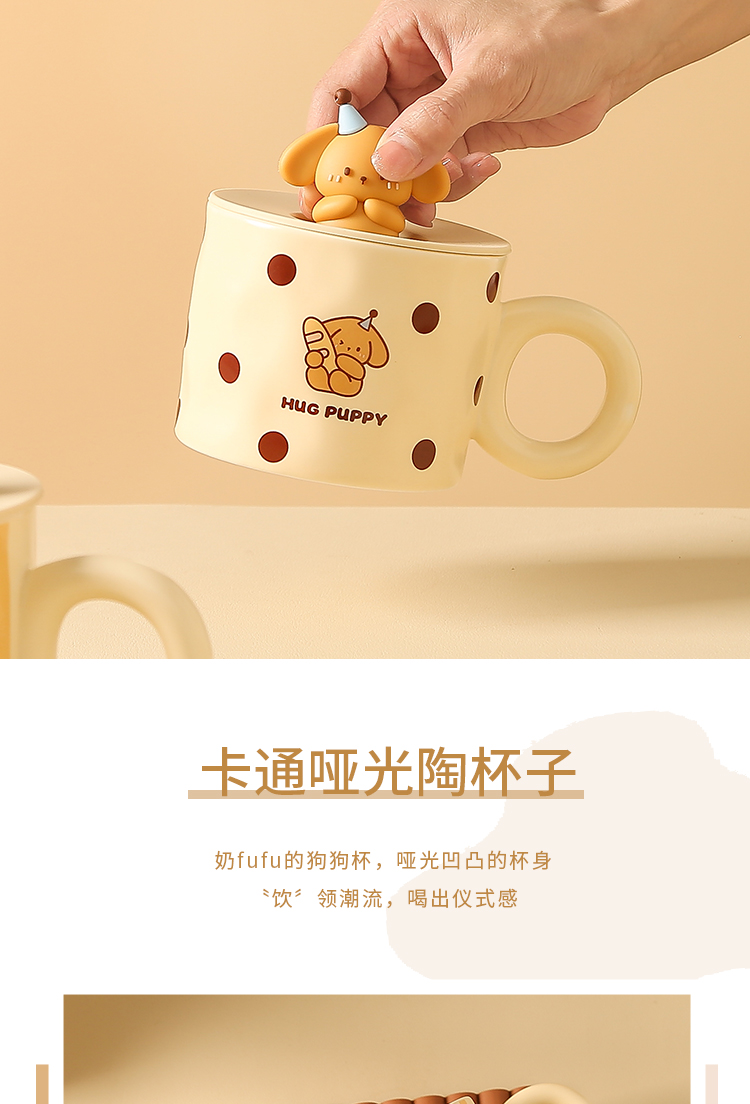 奶fufu陶瓷杯子超萌小奶狗情侶馬克杯帶蓋網紅水杯家用咖啡燕麥杯