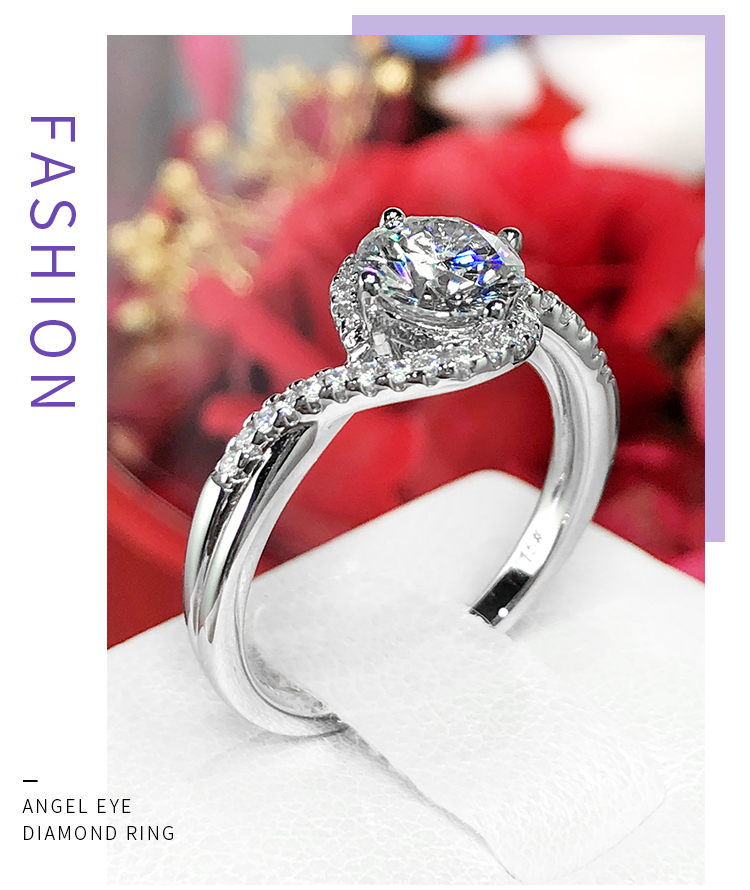 18K金天使之眼扭臂莫桑石戒指鑲嵌1克拉鉆戒結婚戒定鉑金女士禮物