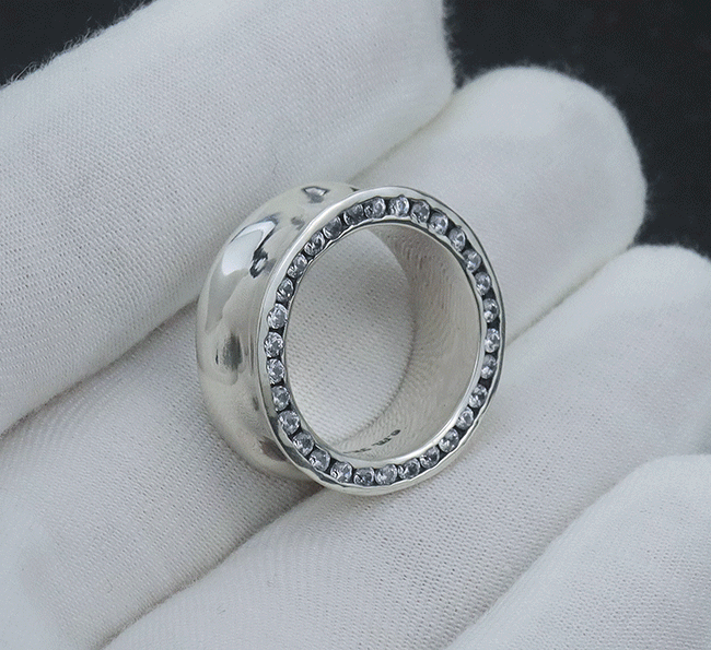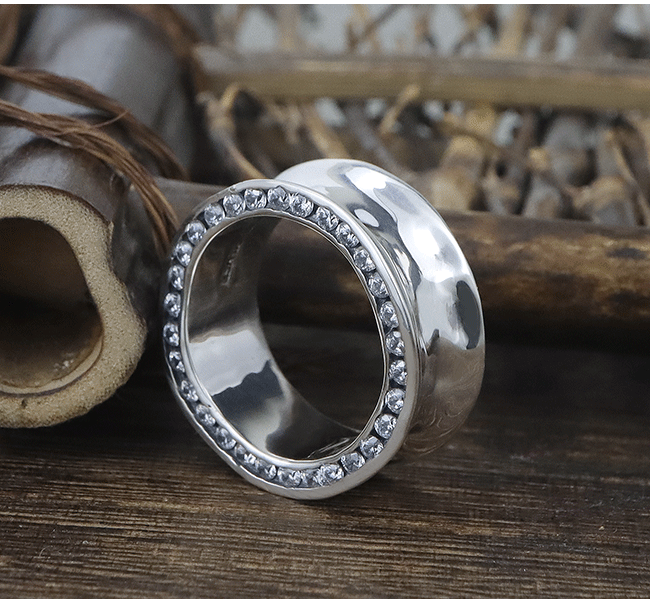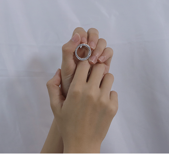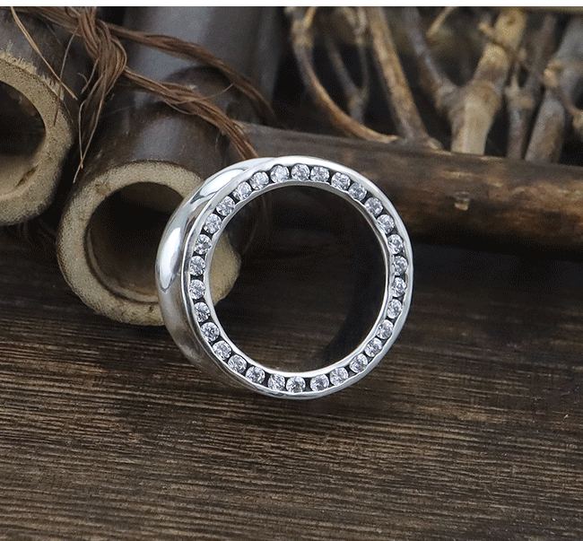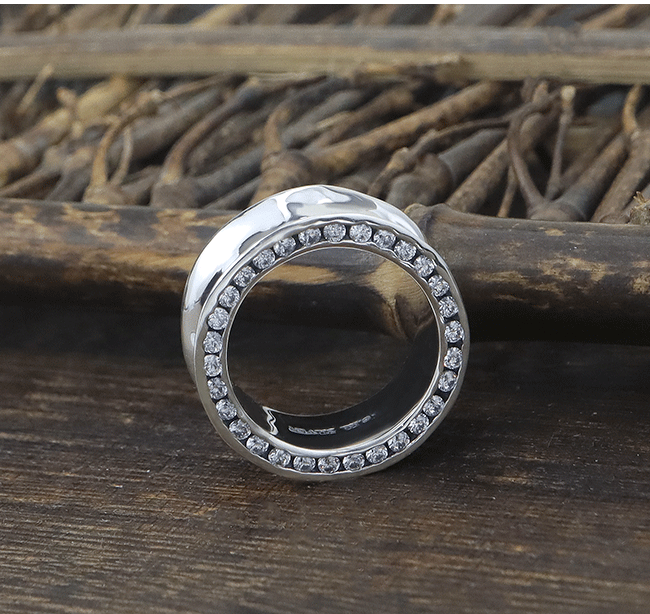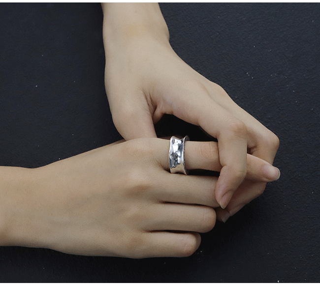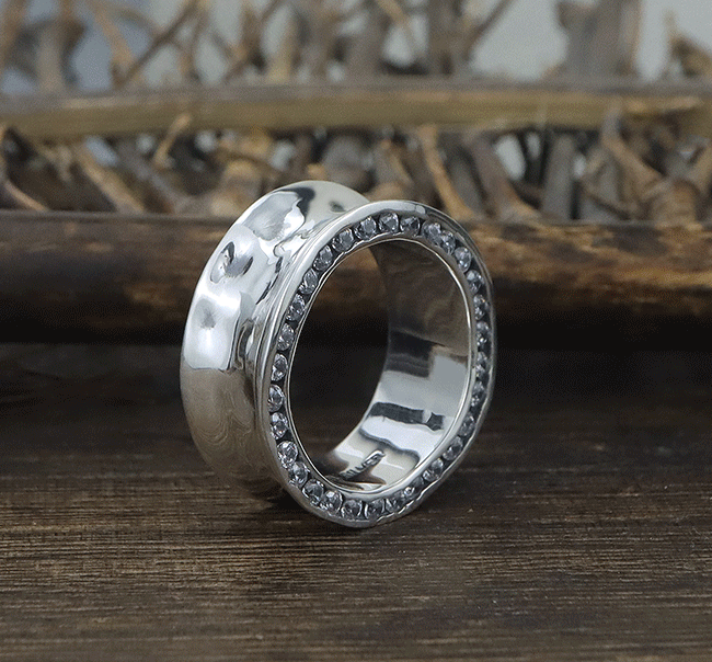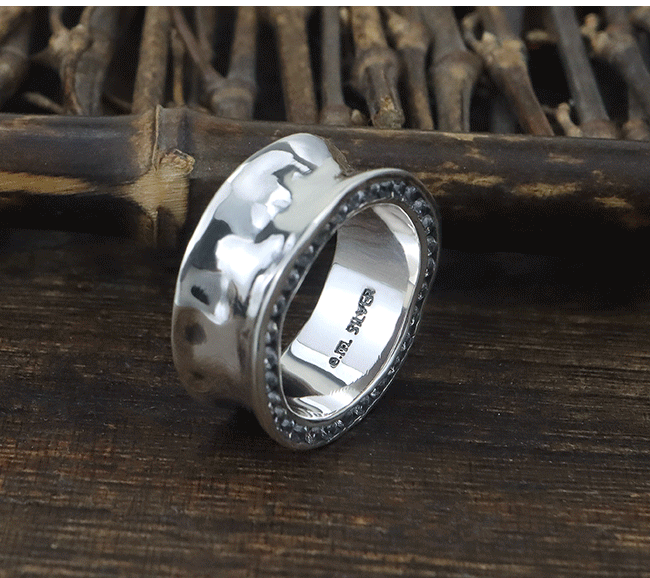 E.M.小眾設計不規則錘紋側面鑲鉆超閃滿鉆鋯石戒指男女純銀潮