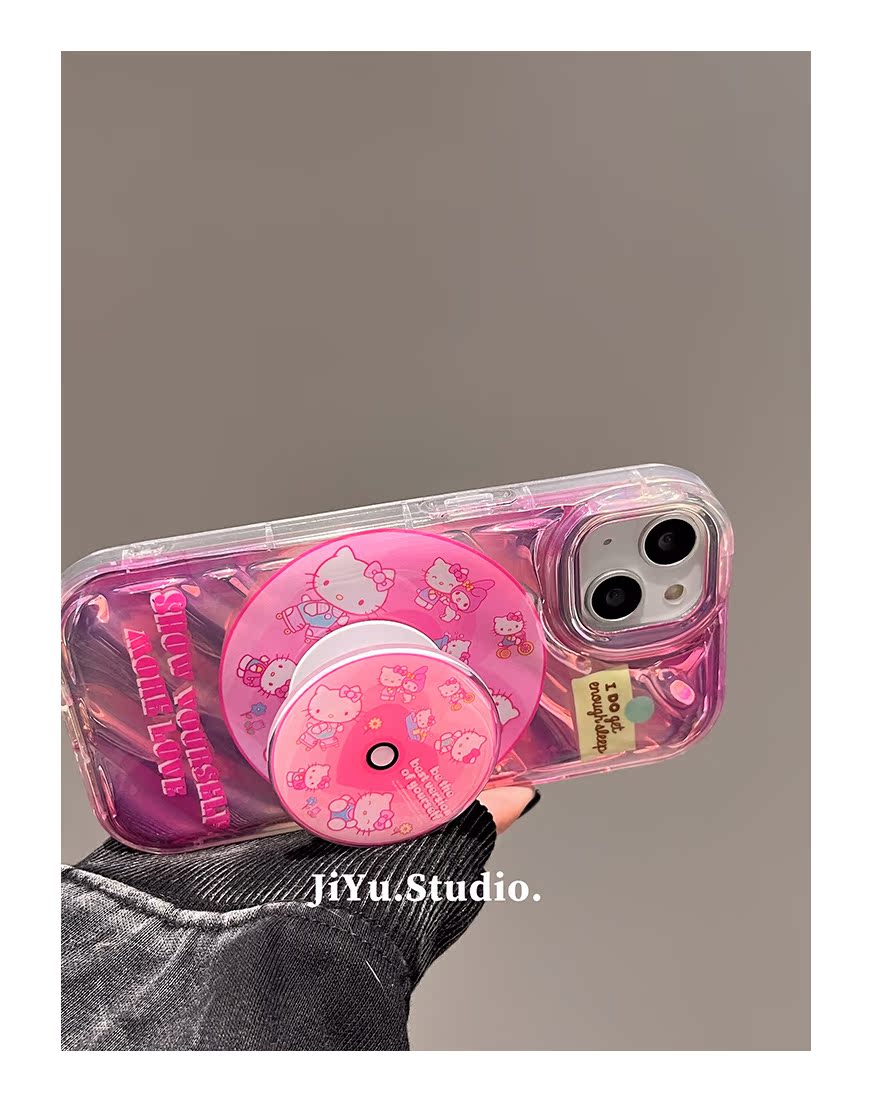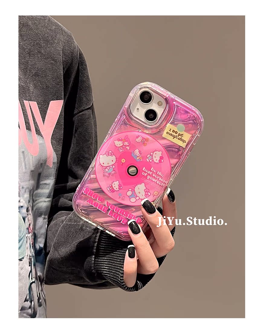 甜酷個性Kitty貓唱片支架適用蘋果14promax手機殼iPhone13pro新款12可愛小眾11女13軟硅膠14pm暈染全包保護套