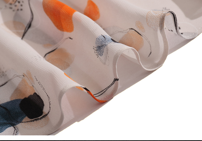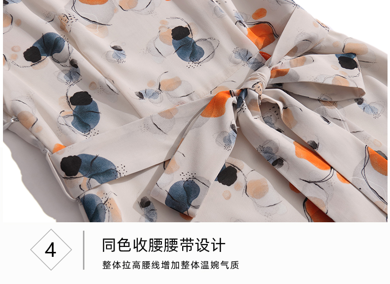 橘色印花連衣裙女氣質收腰顯瘦2023夏季新款V領法式減齡大擺長裙