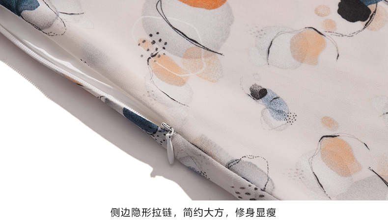白色荷葉邊連衣裙高級感2023新款圓領收腰氣質修身長款過膝印花裙