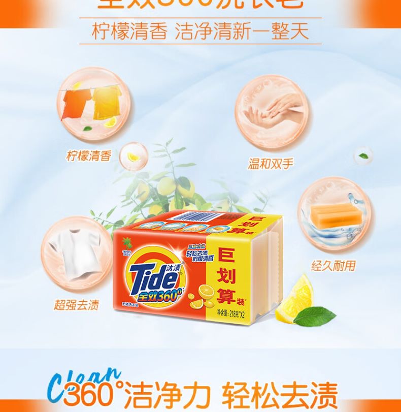 奧妙檸檬超效206g去污99手洗洗衣皂