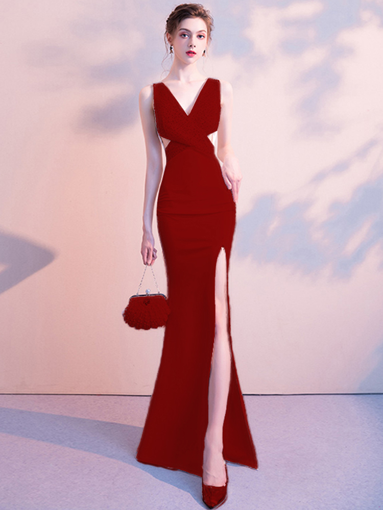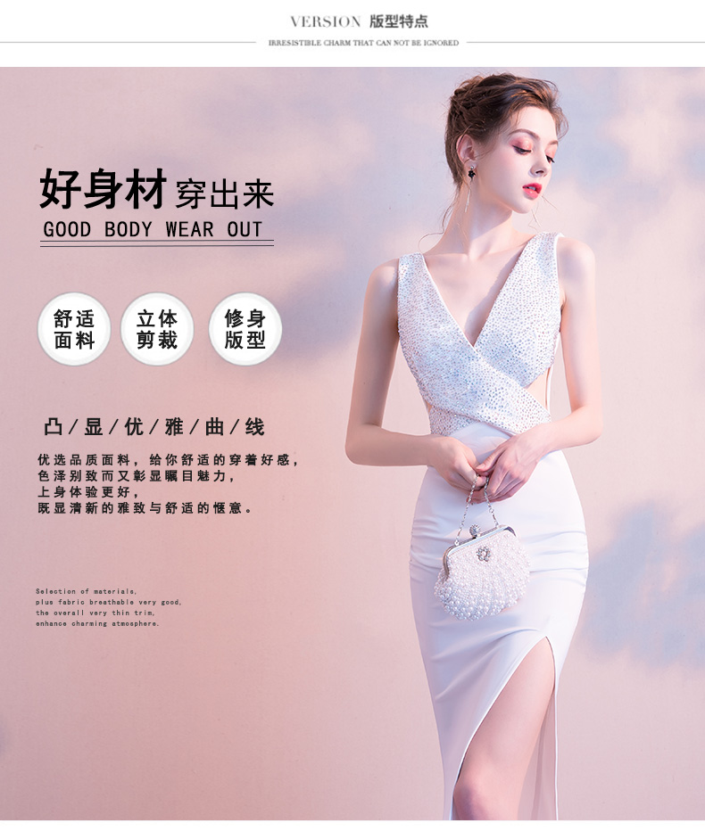 性感晚禮服宴會氣質輕奢小眾高端名媛修身魚尾亮片連衣裙開叉長款